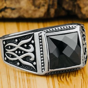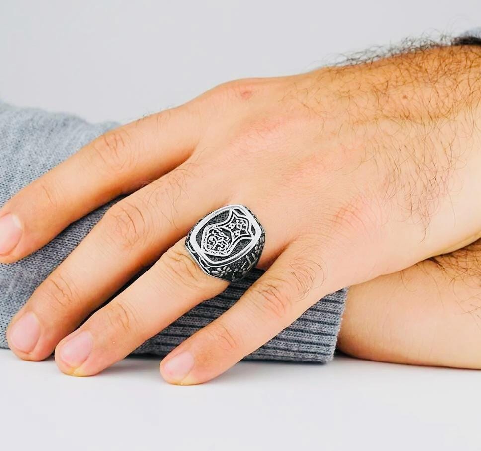 Description: This men’s ring is crafted from 925 sterling silver and features an Ottoman Tughra design combined with an elegant spiral motif. The polished finish enhances its intricate details, making it a statement piece that represents heritage and elegance. Perfect for both everyday wear and special occasions, this unique ring comes in a gift-ready box, ideal for a meaningful present.