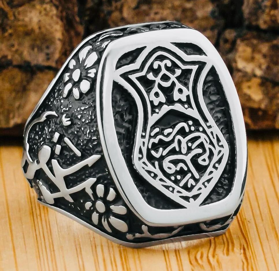 925 Sterling Silver Men’s Ring with Ottoman Tughra & Spiral Design – 9.3 g