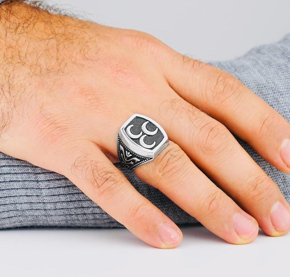 Description: This men’s ring is crafted from 925 sterling silver and features a symbolic three crescent and tulip motif. With its polished finish and bold design, it represents both elegance and strength. Suitable for everyday wear or special occasions, this unique ring also makes a meaningful gift, delivered in an elegant ring box.