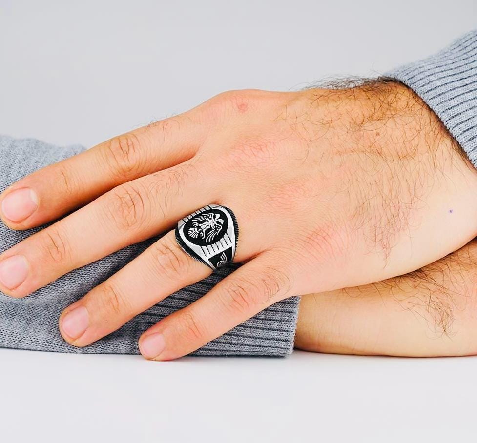 Description: This men’s ring is crafted from 925 sterling silver and features the historic Double-Headed Seljuk Eagle, a symbol of strength, authority, and protection. With its polished finish and detailed craftsmanship, it makes a bold statement and adds a touch of heritage to your style. Perfect for everyday wear or special occasions, it also comes in a ring box, making it an ideal gift for someone special.