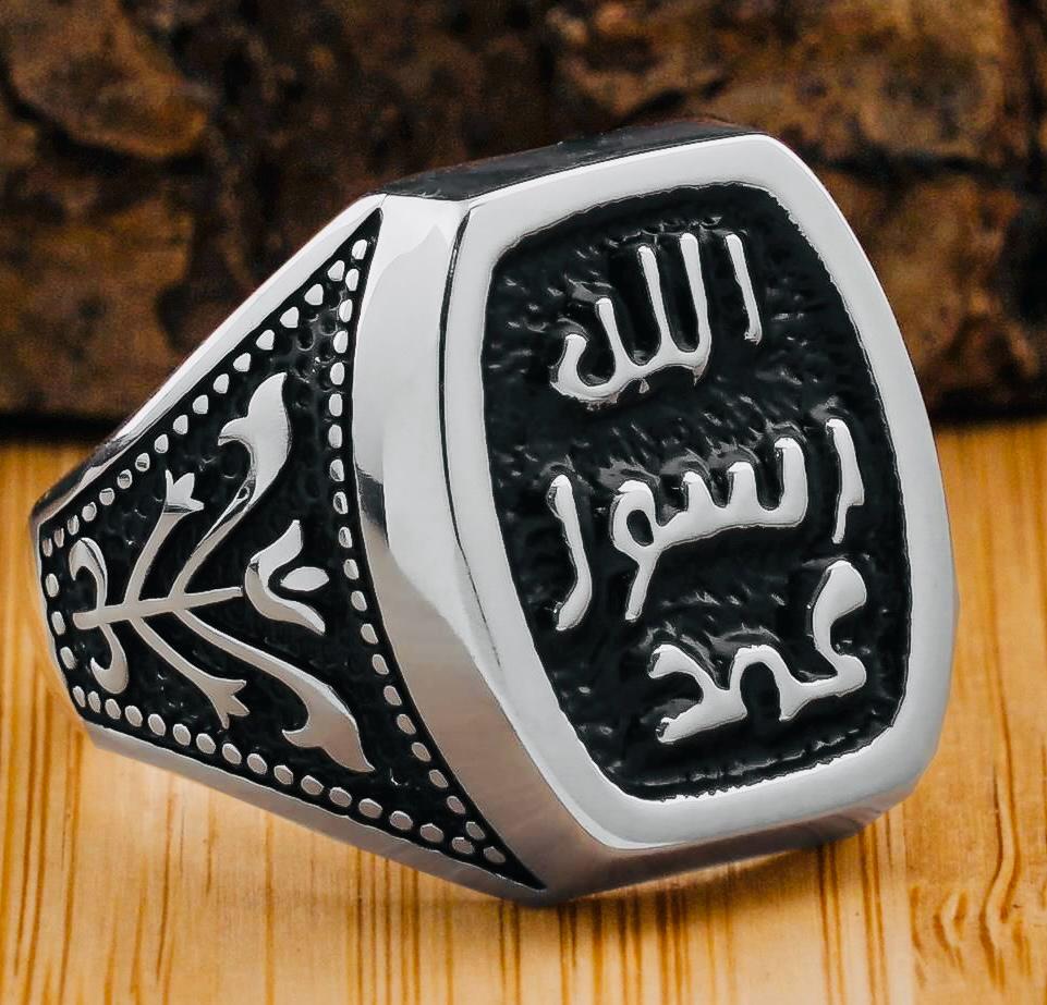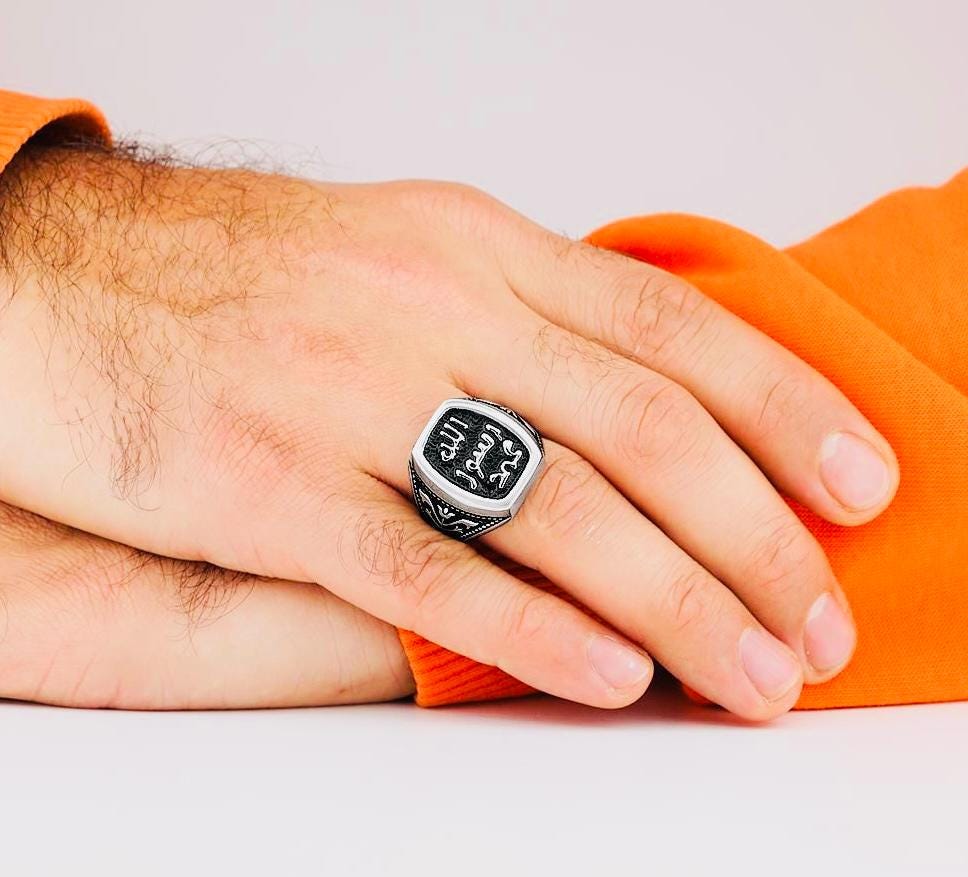 Description: This meaningful men’s ring is crafted from 925 sterling silver and features an inscription of “Allah Rasul Muhammad” combined with a tulip motif, symbolizing both devotion and elegance. With its polished finish and detailed craftsmanship, it is ideal for daily wear or as a thoughtful gift. Delivered in a stylish ring box, this ring represents both spirituality and refined taste.
