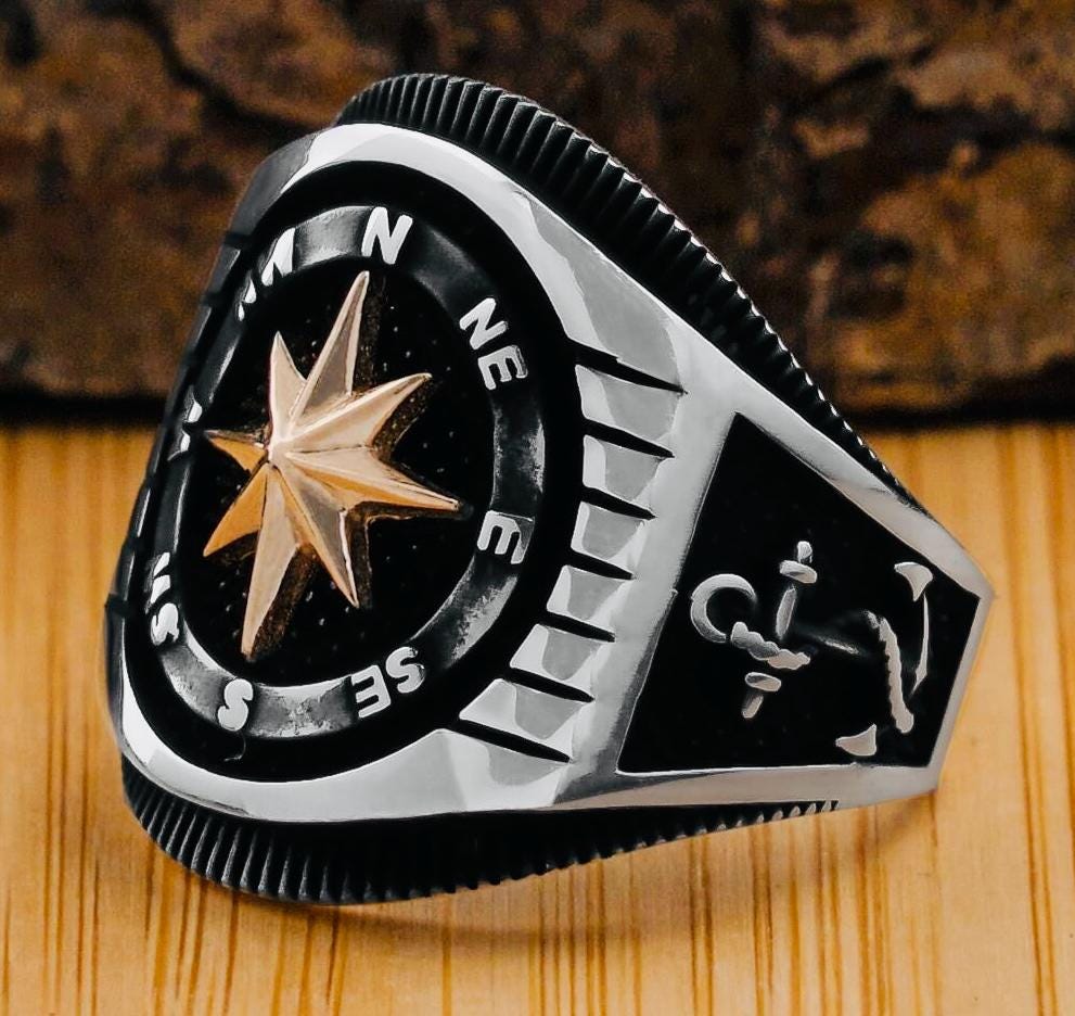 Description: This sterling silver men’s ring is designed with compass, ship wheel, and anchor motifs, symbolizing guidance, strength, and stability. With its polished finish and maritime-inspired design, it’s a meaningful accessory for everyday wear or special occasions. Delivered in an elegant ring box, it also makes a perfect gift for anyone with a passion for the sea and nautical style.