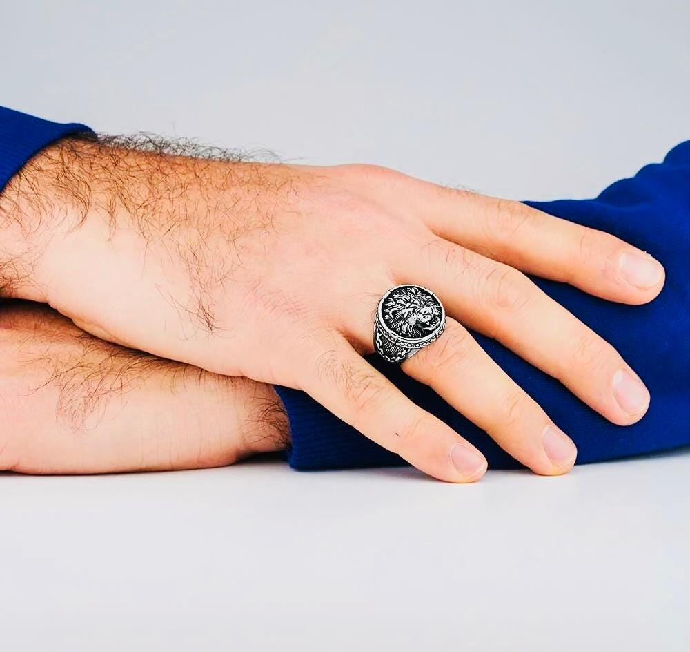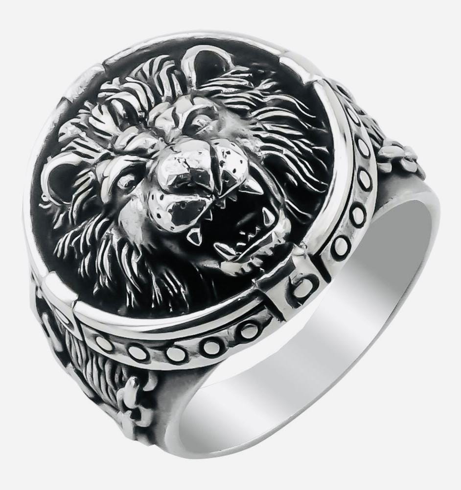 Product Details: • Material: 925 sterling silver • Design: Roaring lion motif • Size: 2 cm x 2 cm • Weight: approx. 12.1 g (may vary by size) • Finish: Polished • Origin: Turkey • Comes in a ring box