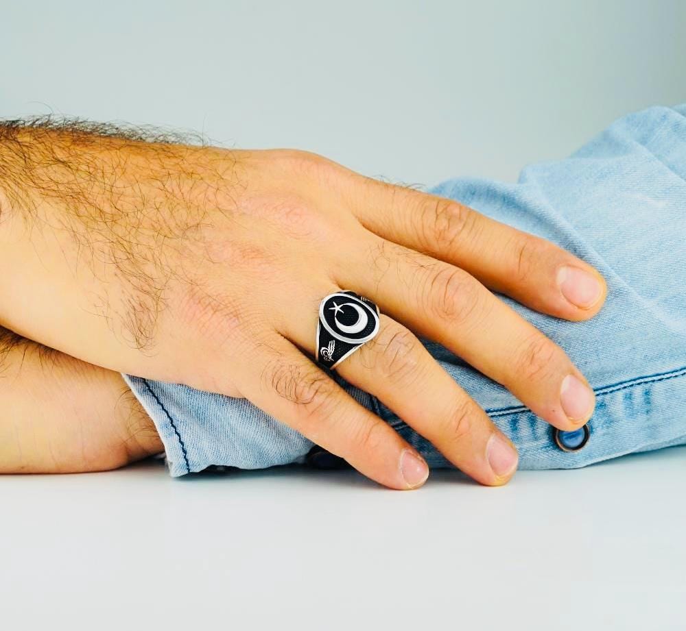 Description: This men’s ring is crafted from 925 sterling silver and features a meaningful Crescent and Star design, symbolizing strength and heritage. With its polished finish, it is a stylish accessory for both everyday wear and special occasions. Delivered in an elegant ring box, it also makes a thoughtful gift for someone special.