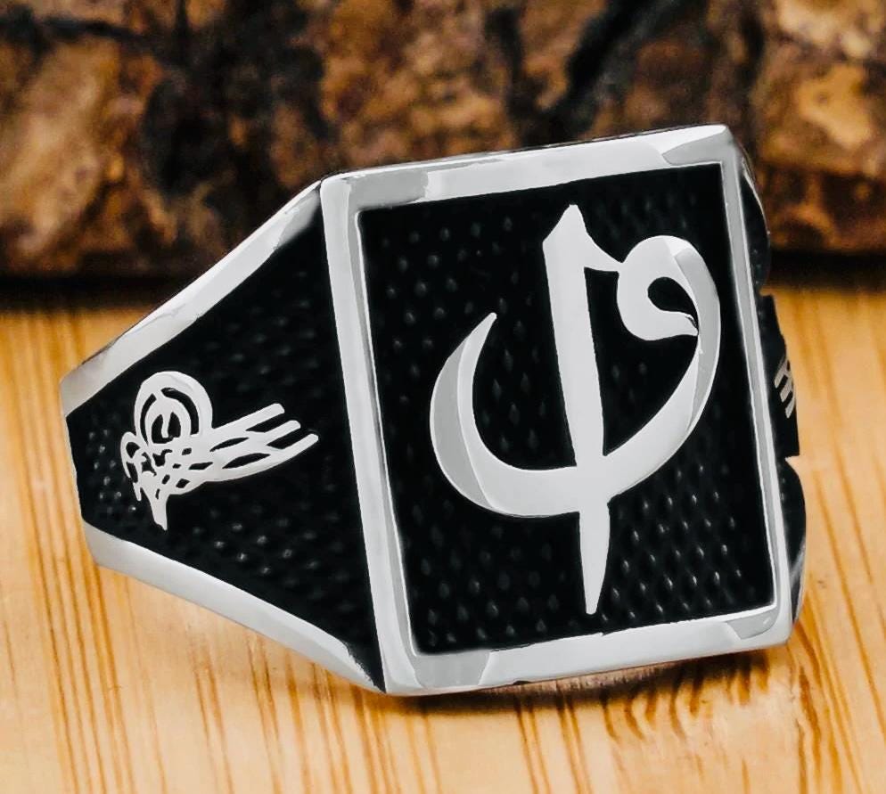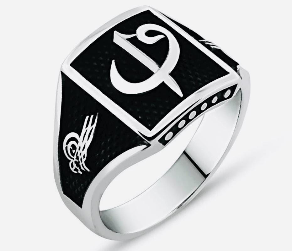925 Sterling Silver Men’s Ring with Ottoman Tughra and Elif Vav Motif – 8 g