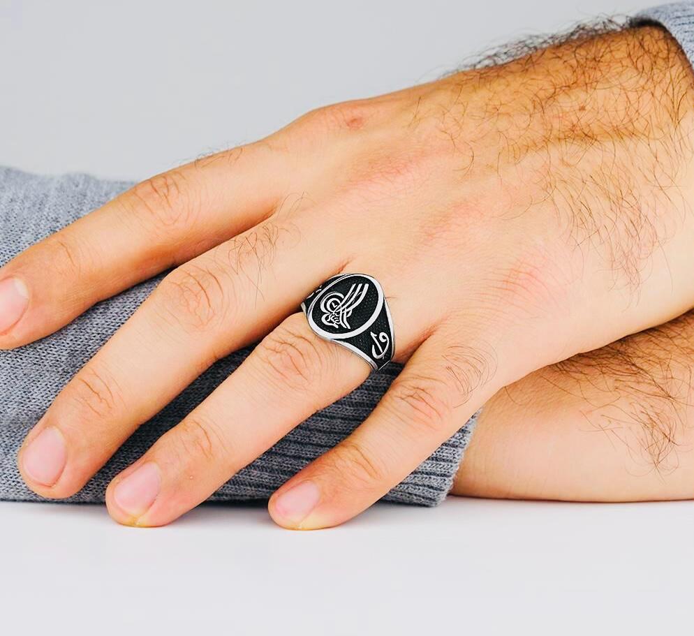925 Sterling Silver Men’s Ring with Ottoman Tughra and Elif Vav Motif – 8.5 g