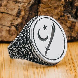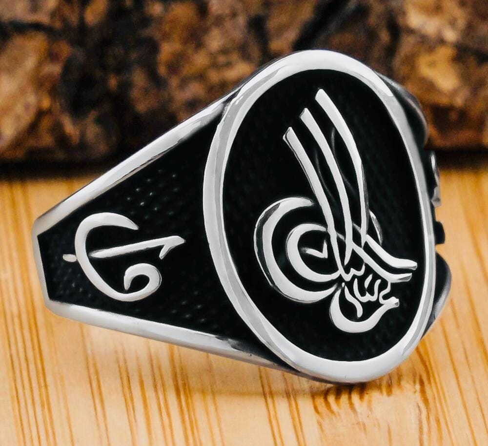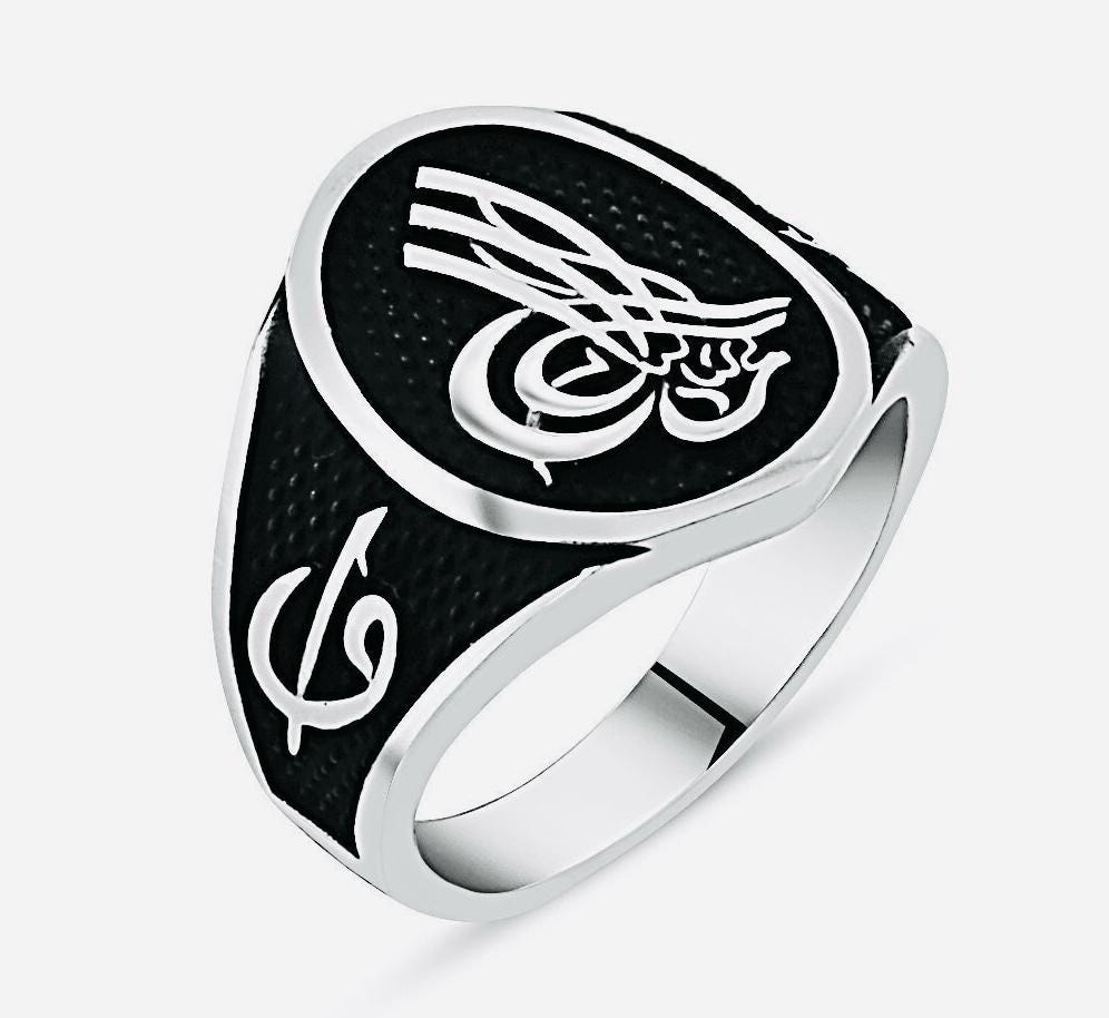 Product Details: • Material: 925 sterling silver • Design: Ottoman Tughra & Elif Vav motifs • Stone: None • Weight: approx. 8.5 g (may vary by size) • Finish: Polished • Origin: Turkey • Comes in a ring box