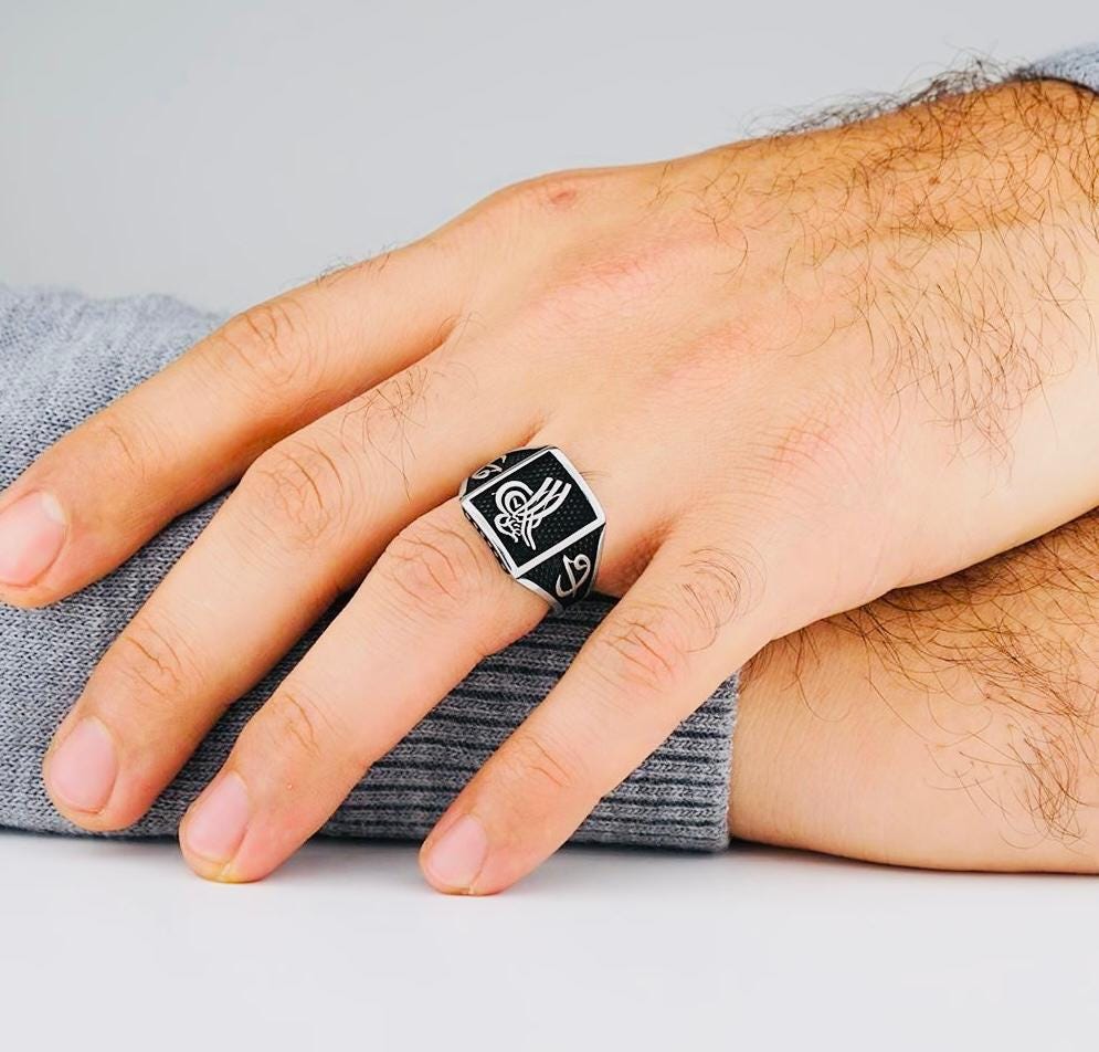 Description: This men’s ring is crafted from 925 sterling silver and features the iconic Ottoman Tughra motif, symbolizing heritage and elegance. With its polished finish and meaningful design, it is suitable for both everyday wear and special occasions. Delivered in a stylish ring box, it also makes a thoughtful and unique gift for someone special.