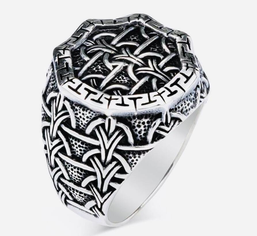 925 Sterling Silver Men’s Ring with Chain Pattern Design – 13 g