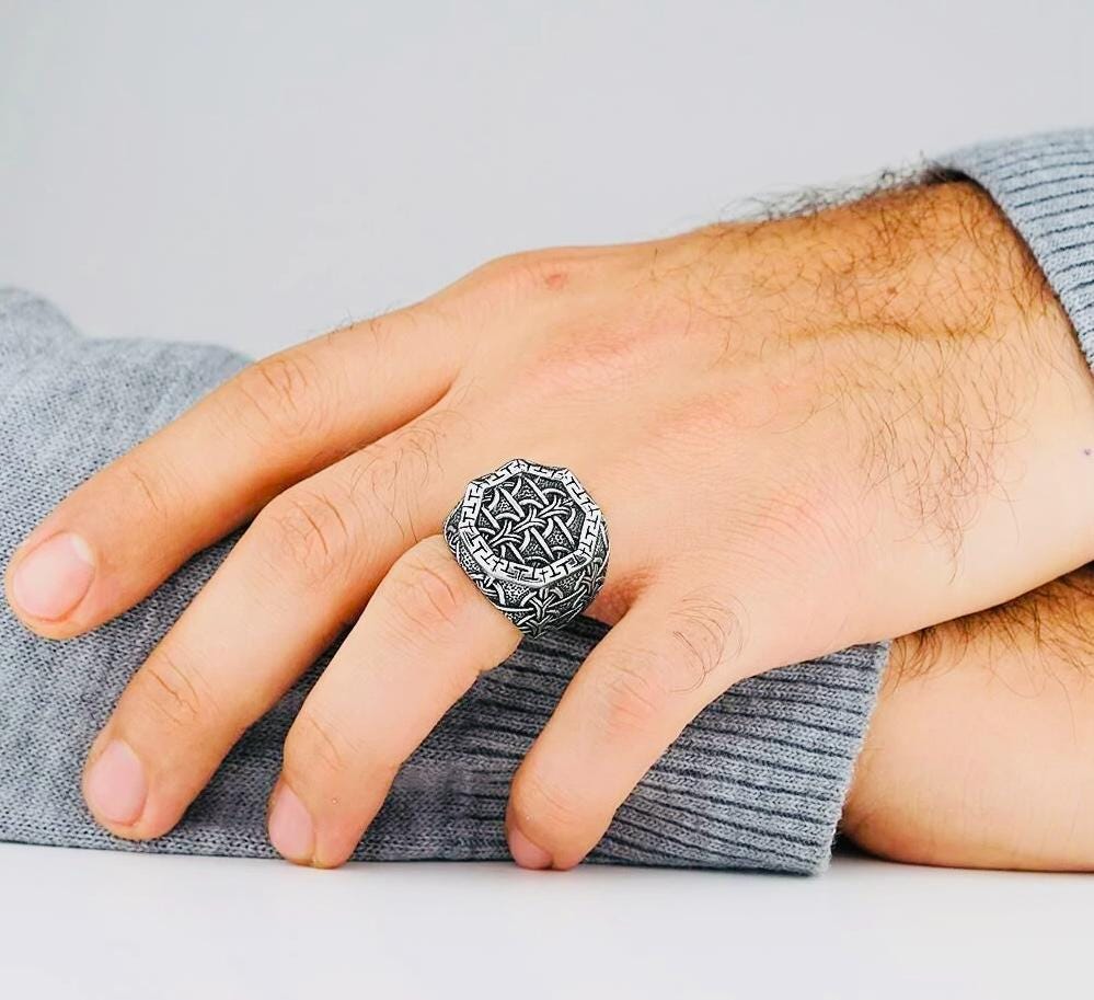 Description: This 925 sterling silver men’s ring features a bold chain design, symbolizing strength and resilience. Its polished finish enhances the detailed craftsmanship, making it a versatile accessory for both everyday wear and formal occasions. Delivered in a stylish ring box, it also makes a meaningful gift for someone special.