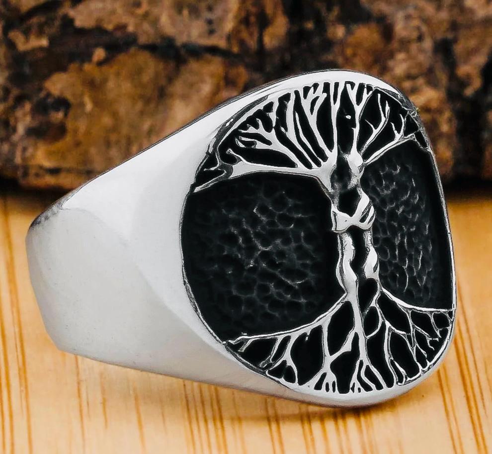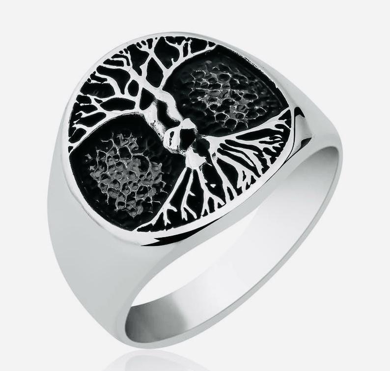 925 Sterling Silver Men’s Ring with Tree of Life Design – 7.1 g