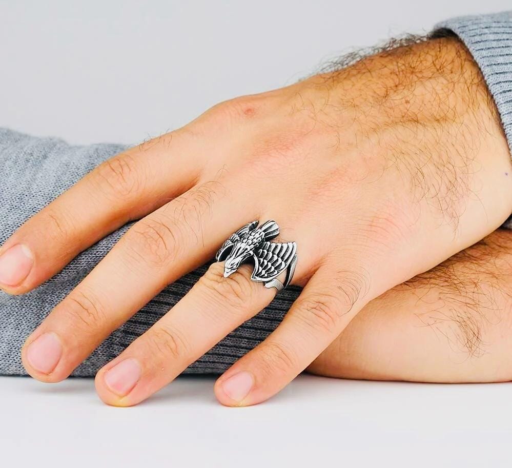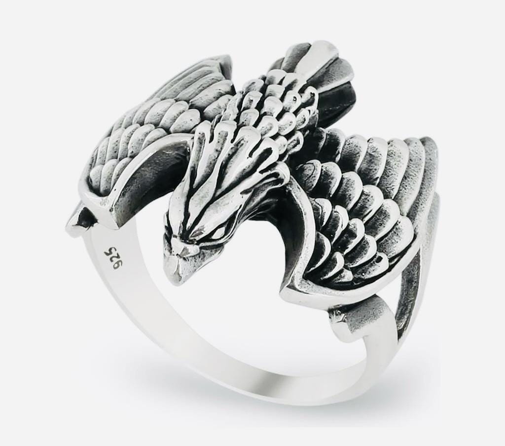 Product Details: • Material: 925 sterling silver • Design: Eagle motif • Weight: approx. 12.7 g (may vary by size) • Finish: Polished • Origin: Turkey • Comes in a ring box