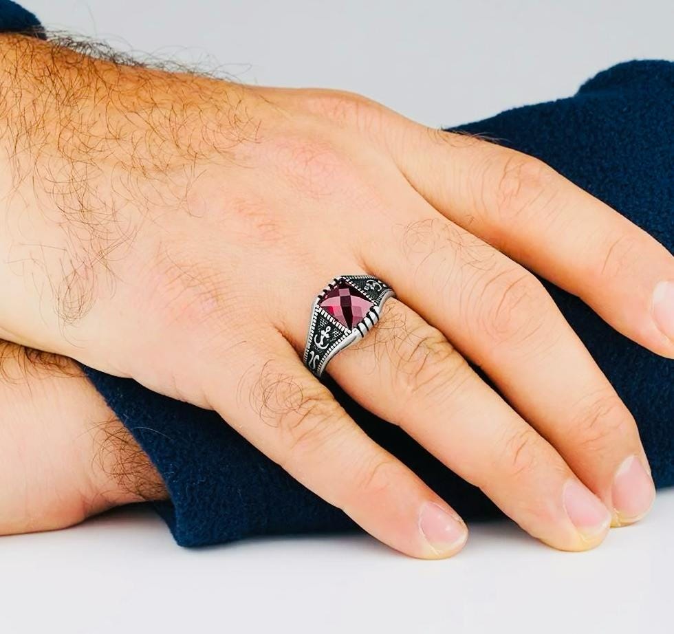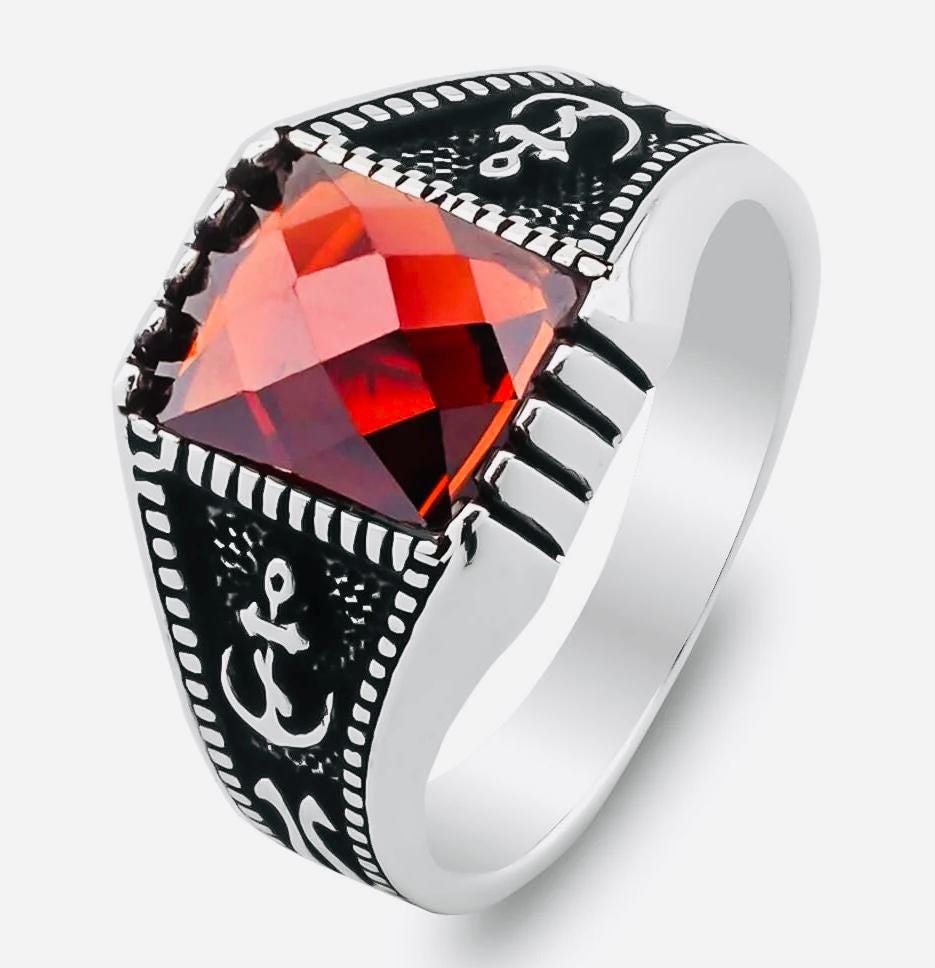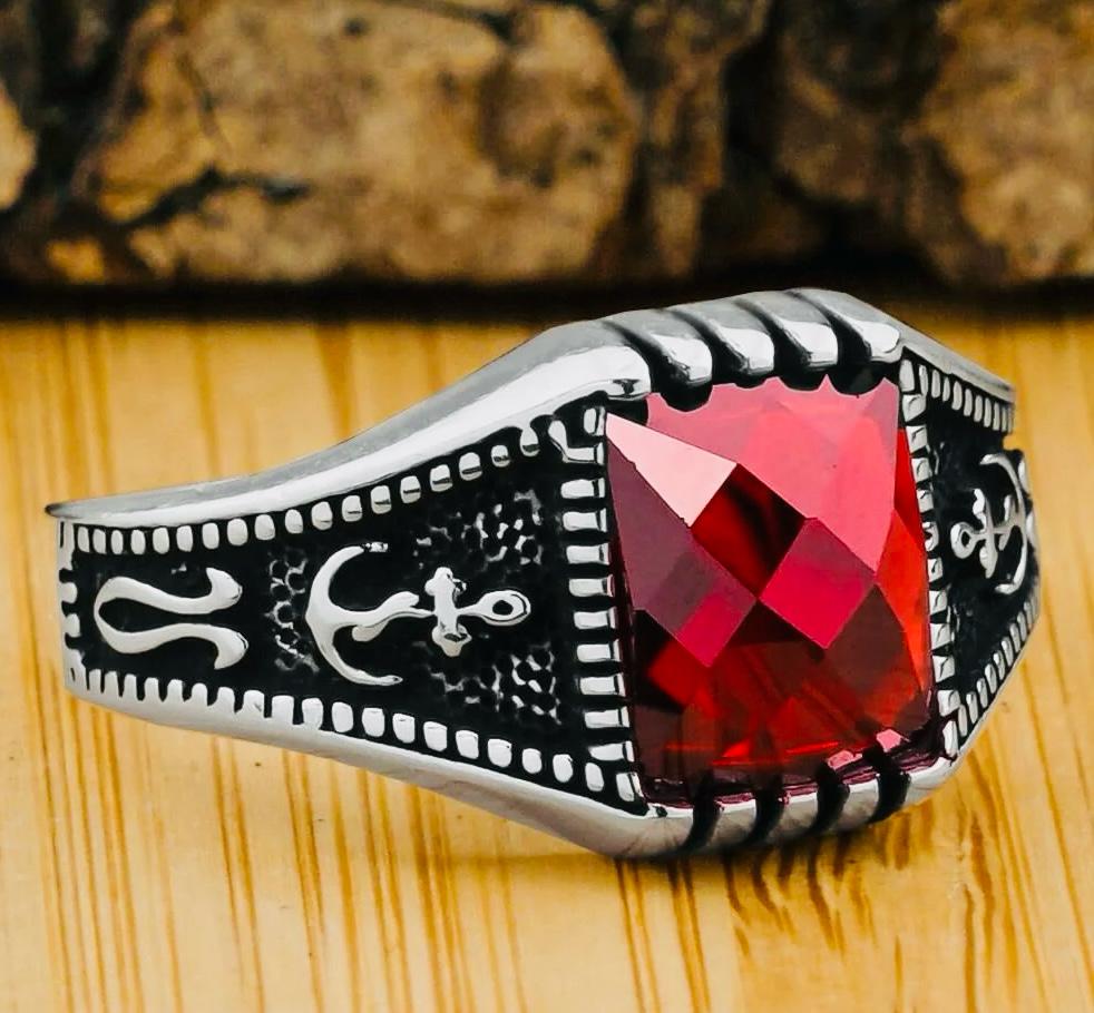 Description: This unique men’s ring combines the symbolism of strength and stability with a nautical anchor design and a striking red zircon stone. Crafted from 925 sterling silver with a polished finish, it adds a bold yet elegant touch to any outfit. Perfect for daily wear or special occasions, and delivered in a stylish ring box, making it an excellent gift choice.
