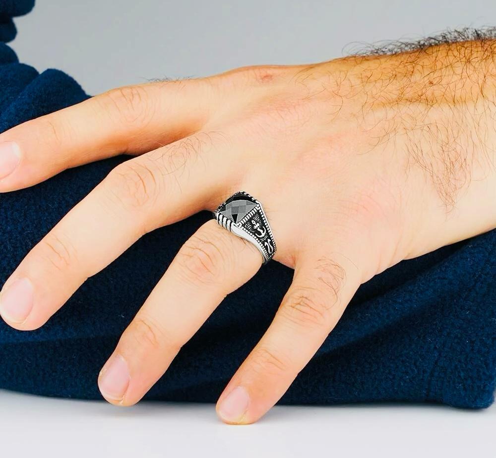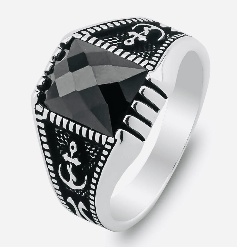 Description: This men’s ring is made of 925 sterling silver and features a polished black zircon stone with a nautical anchor design. Symbolizing strength and stability, it’s an elegant accessory that suits both casual and formal styles. Delivered in a stylish ring box, it also makes a thoughtful gift for someone special who appreciates nautical or symbolic jewelry.