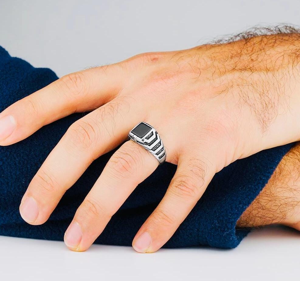Description: This men’s ring is crafted from 925 sterling silver and features a square-cut black onyx stone with elegant patterns. The polished finish enhances the bold appeal of the black onyx, making it suitable for both everyday wear and special occasions. Delivered in a stylish ring box, it also makes a meaningful gift for someone special.