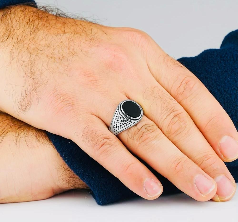 Description: Crafted from 925 sterling silver, this men’s ring features an elegant oval black onyx stone in a polished finish, enhanced with detailed patterns. The black onyx is known for its bold and timeless appeal, making this piece perfect for everyday wear or special occasions. Delivered in a stylish ring box, it is also a thoughtful gift choice for someone special.