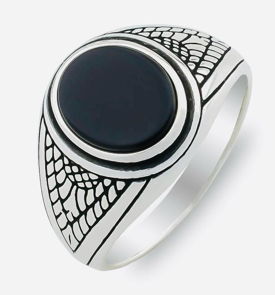 Product Details: • Material: 925 sterling silver • Stone: Black Onyx • Design: Oval with detailed patterns • Weight: approx. 7.3 g (may vary by size) • Size: 1.0 x 1.2 cm • Finish: Polished • Origin: Turkey • Production: Mold-crafted • Comes in a ring box