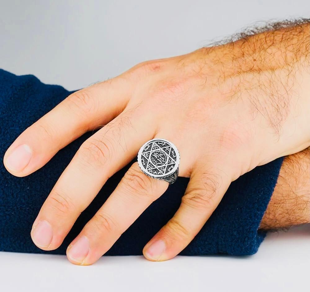 925 Sterling Silver Men’s Ring with Seal of Solomon Design – 13.1 g
