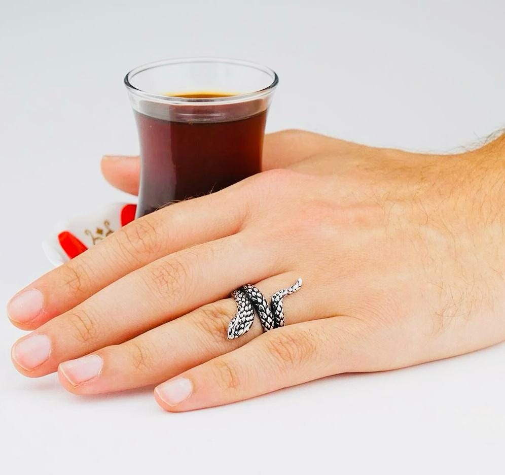 Product Details: • Material: 925 sterling silver • Design: Snake motif • Weight: approx. 6.8 g (may vary by size) • Finish: Polished • Origin: Turkey • Comes in a ring box