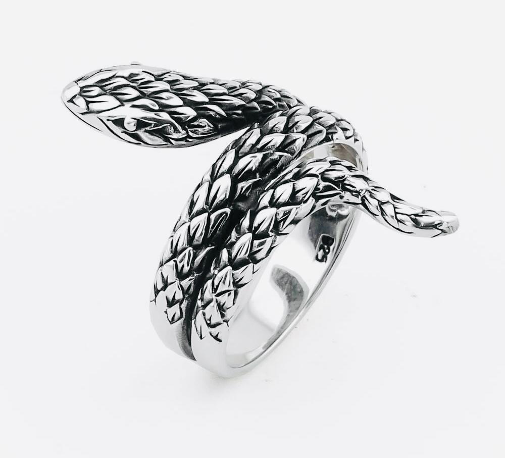 925 Sterling Silver Men’s Ring with Snake Design – 6.8 g