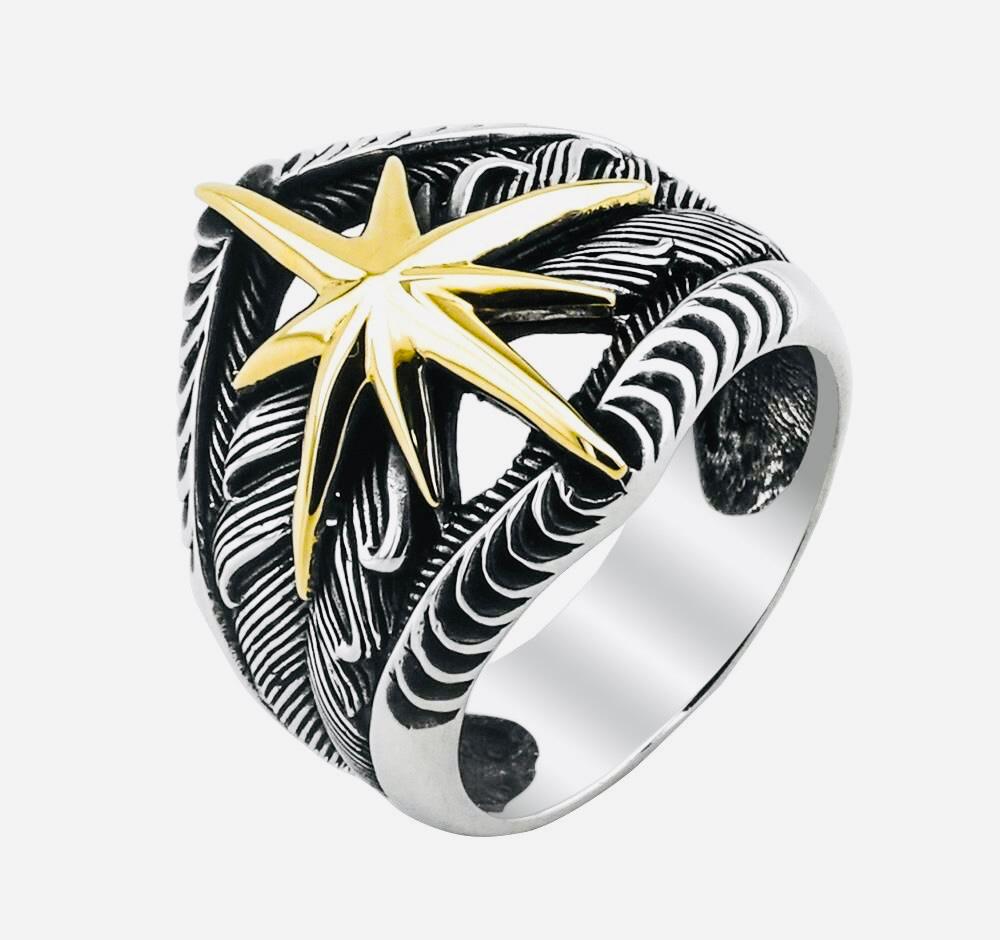 Description: The North Star has long symbolized guidance, direction, and hope. This sterling silver men’s ring is crafted from 925 sterling silver with a polished finish, featuring a detailed North Star design. Perfect for everyday wear or as a statement accessory on special occasions. Delivered in a stylish ring box, it also makes a thoughtful and symbolic gift.