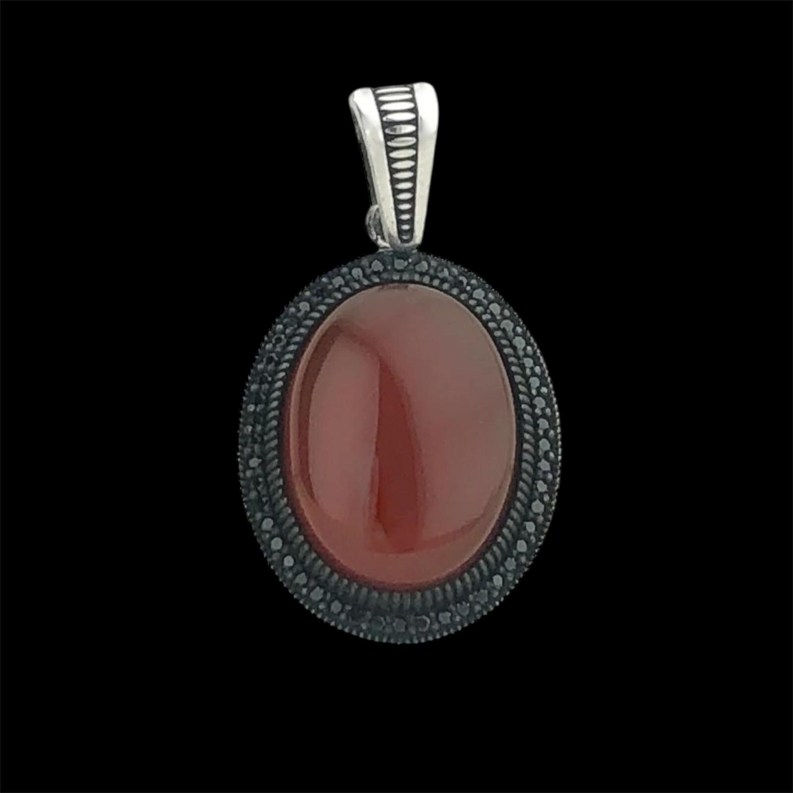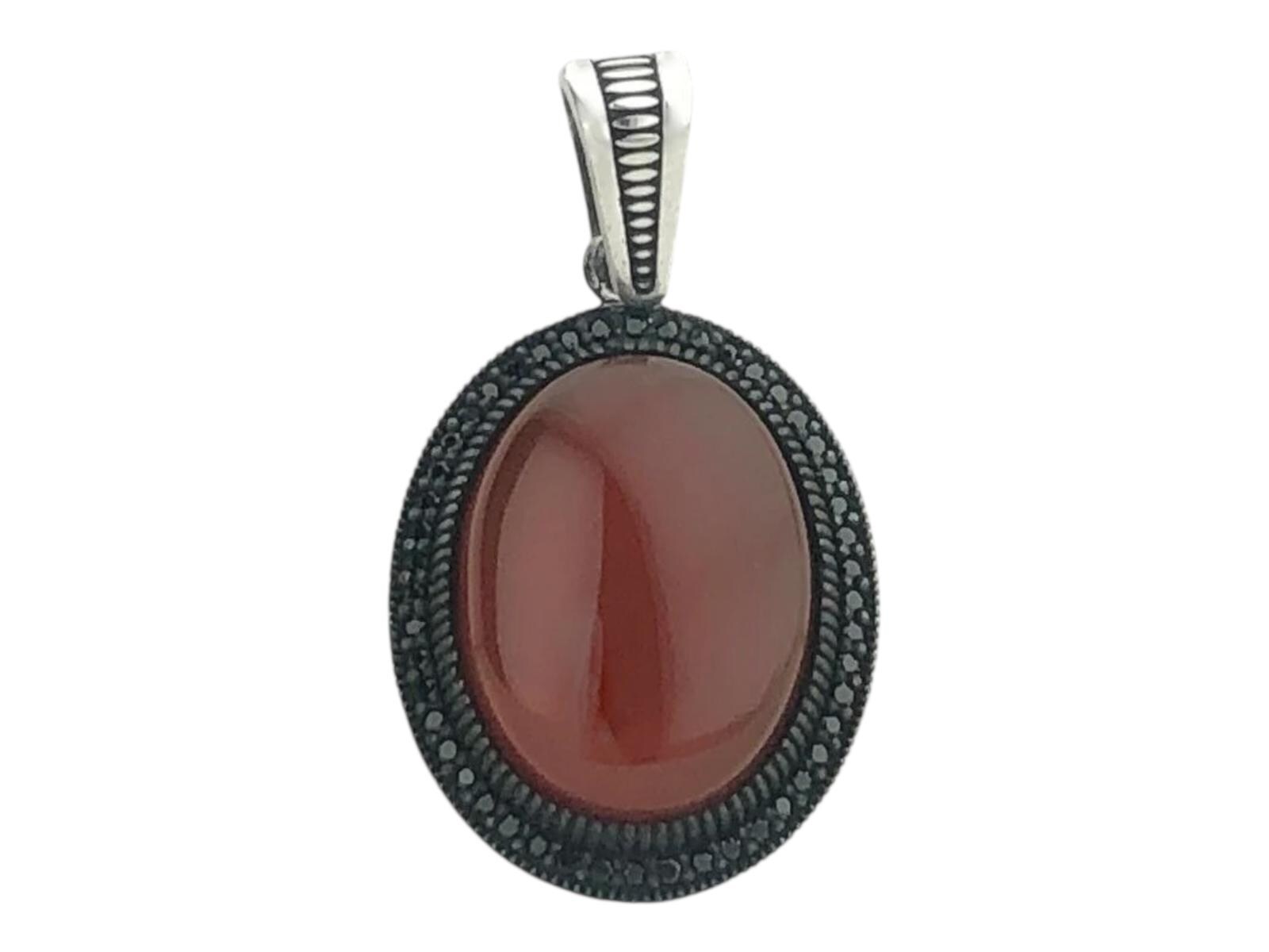 925 Sterling Silver Pendant with Red Agate Stone – 7.25 g