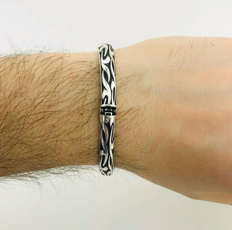 Product Details: • Material: 925 sterling silver • Weight: 29.15 g • Dimensions: 7 cm (2.75 in) length x 3.3 cm (1.29 in) width • Adjustable cuff design • Comes in a bracelet box