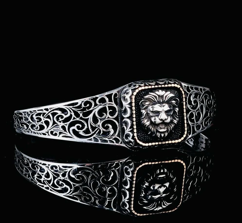 925 Sterling Silver Adjustable Men’s Cuff Bracelet with Lion Design – 36 g