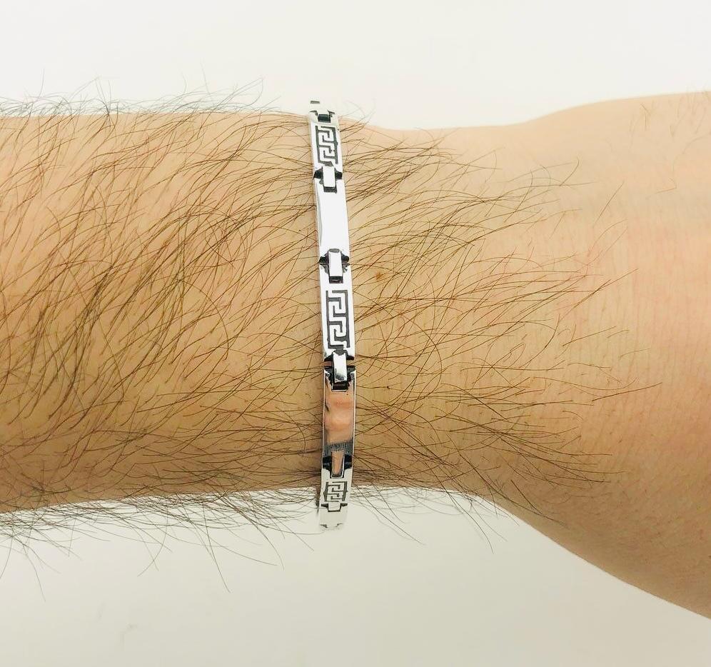 Description: This men’s bracelet is crafted from 925 sterling silver, offering a sleek and polished design perfect for daily wear or special occasions. Lightweight and comfortable, it adds sophistication to any look. Delivered in a premium bracelet box, it also makes a thoughtful gift for someone special.