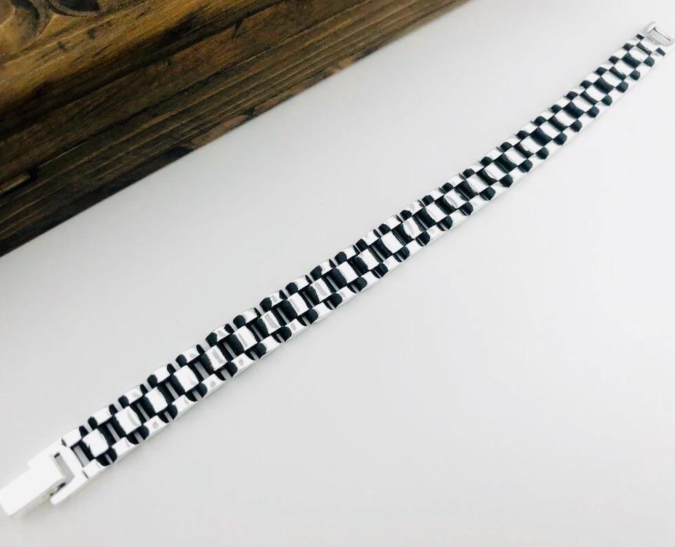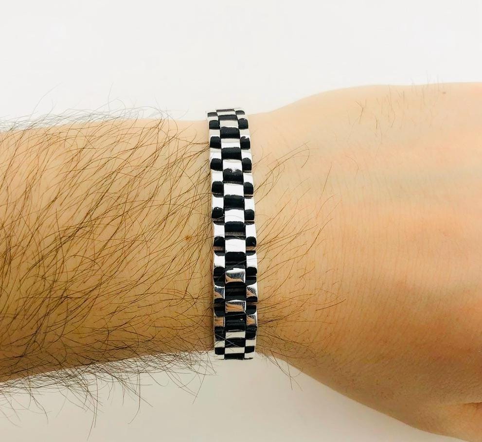 Description: Crafted from solid 925 sterling silver, this men’s bracelet features a sleek watch band design, combining elegance with strength. Its polished finish makes it perfect for both everyday wear and formal occasions. Delivered in a stylish bracelet box, it is also an ideal gift for him.