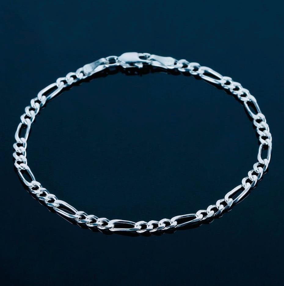 925 Sterling Silver Figaro Chain Bracelet – 4 mm, 21 cm, Unisex