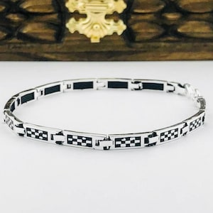 Description: This men’s bracelet is crafted from 925 sterling silver and designed in a stylish woven (mesh) pattern that combines elegance with durability. A versatile piece perfect for everyday wear as well as special occasions. Delivered in a premium bracelet box, it also makes a meaningful gift for him.