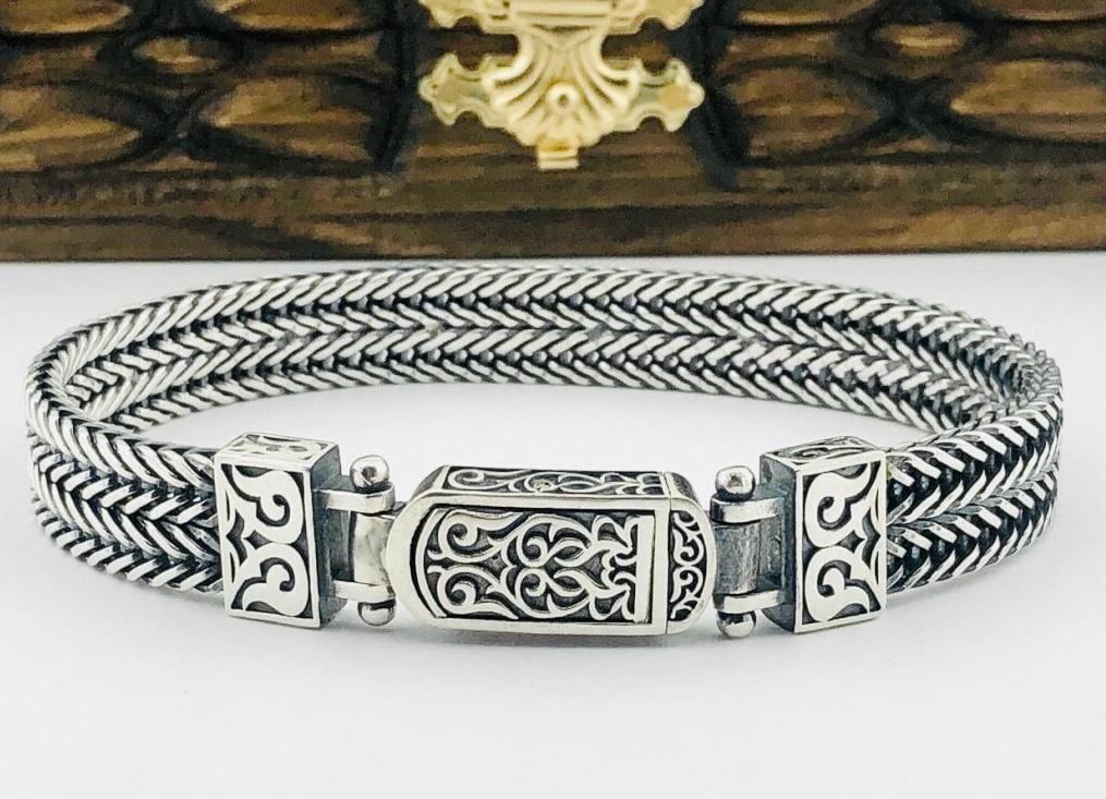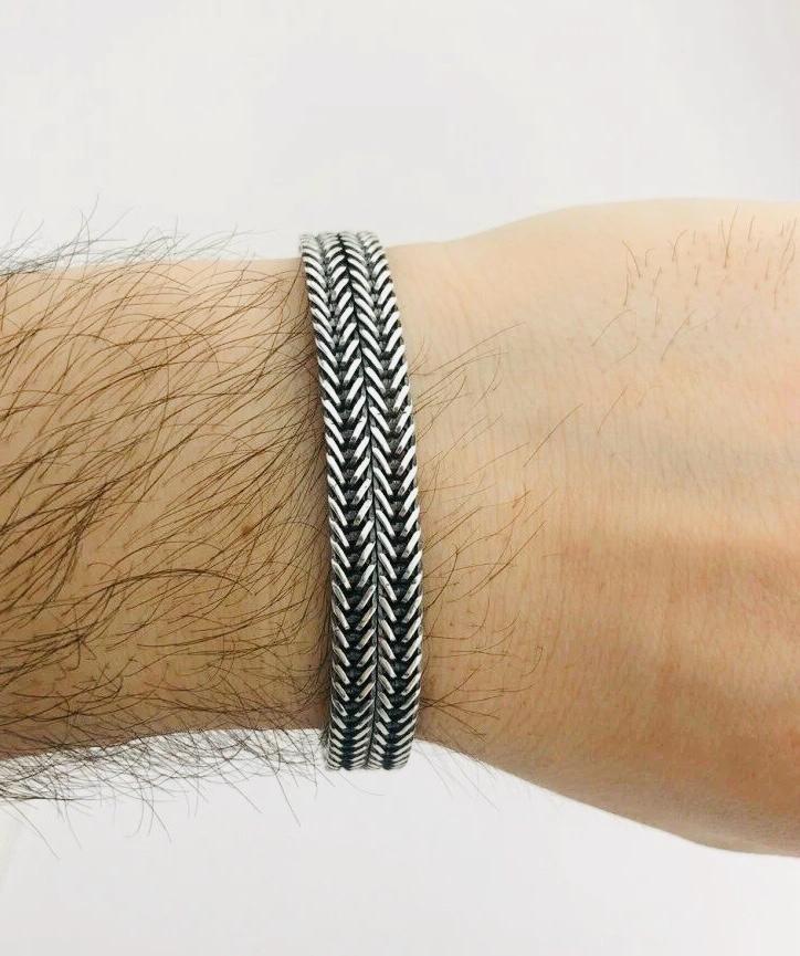 925 Sterling Silver Men’s Woven Bracelet – 34.80 g