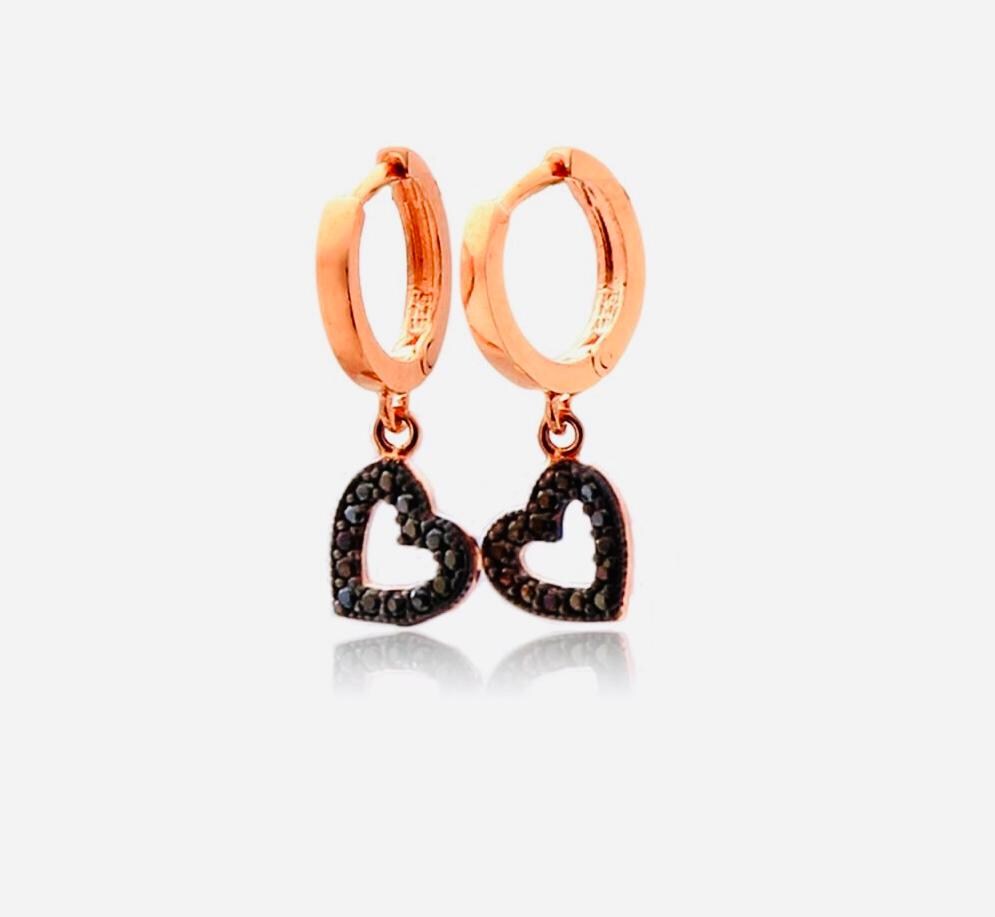 Description: These elegant heart-shaped earrings, crafted from 925 sterling silver and adorned with black zircon stones, symbolize love and elegance. Perfect for both everyday wear and special occasions. A meaningful gift choice for someone you love.