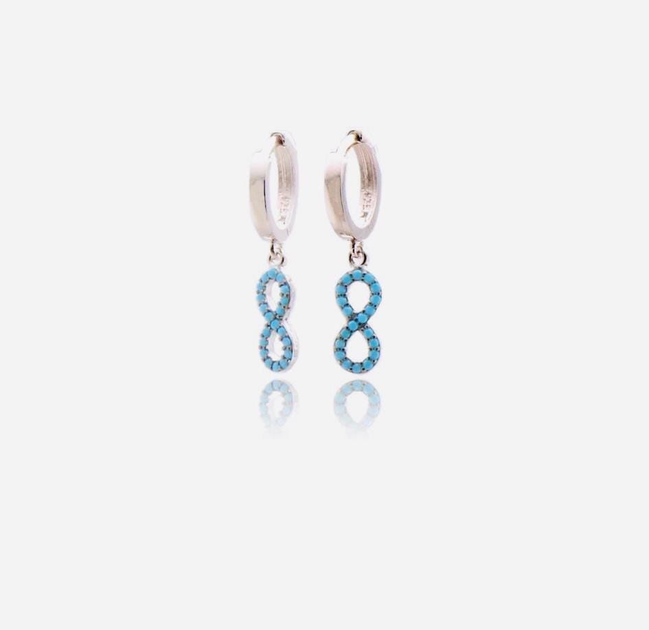 Description: The infinity symbol represents eternal love and loyalty. These 925 sterling silver earrings are adorned with turquoise nano stones for a bright and elegant touch. Perfect for daily wear or special occasions, they come in a beautiful jewelry box, making them an ideal gift for someone special.