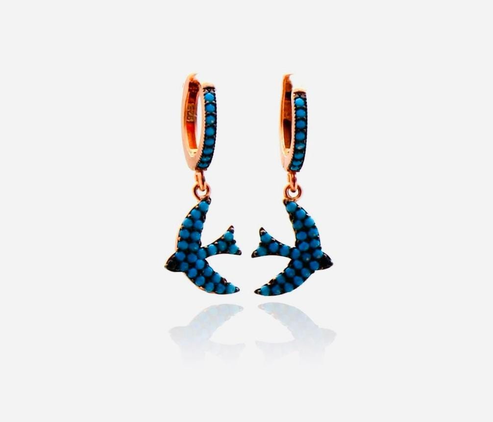925 Sterling Silver Bird Earrings with Nano Turquoise Stone – 2.5 g