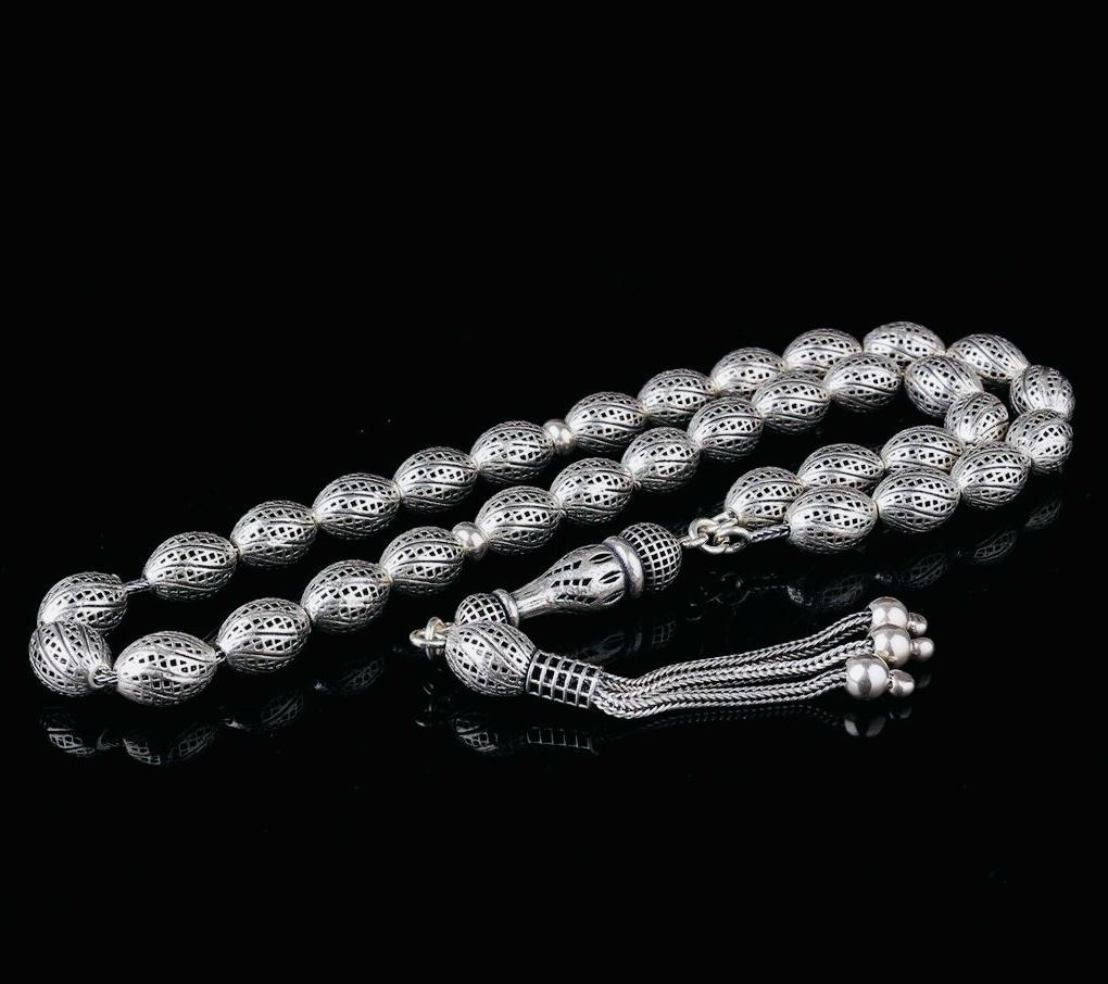 925 Sterling Silver Fizyon Cut Arpa Bead Tasbih Model 12 – 33 Beads – 28.5 cm
