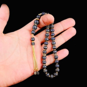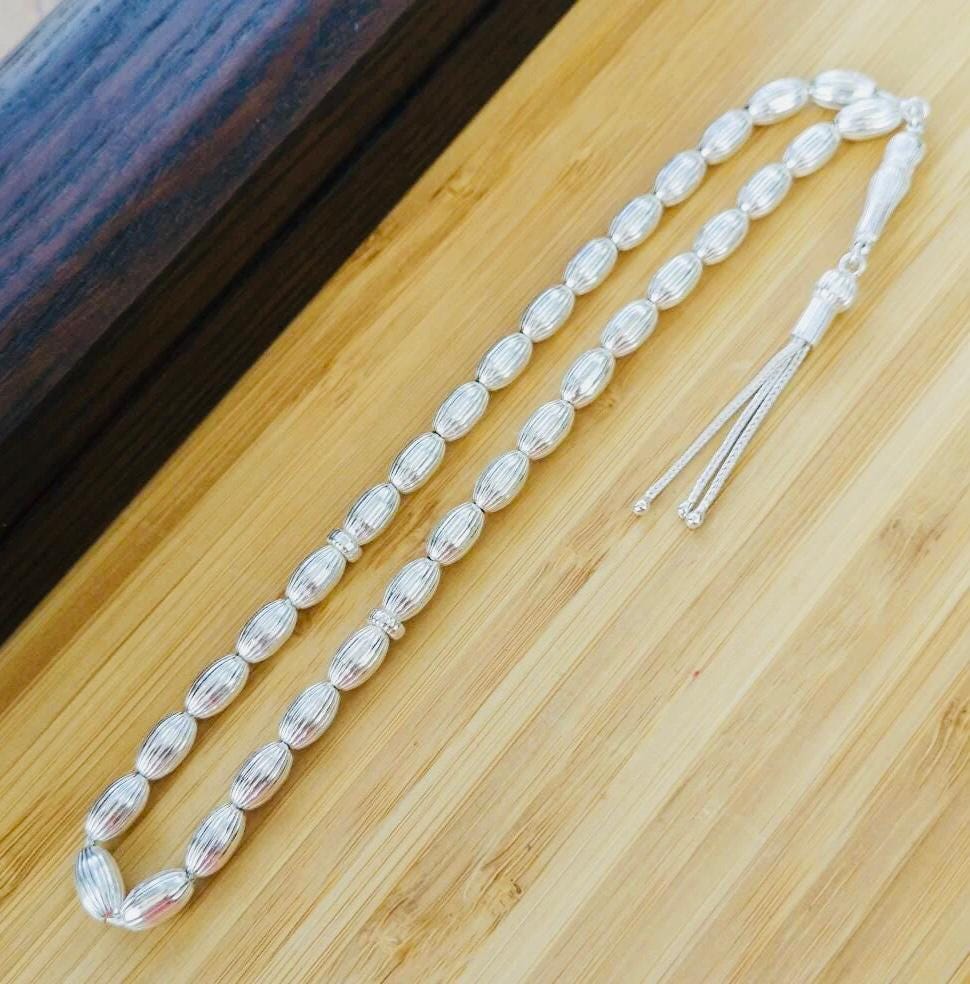 Description: This 925 sterling silver tasbih features 10x6 mm striped barrel-cut beads with a total. With a length of 25 cm, it sits elegantly in hand and offers both style and comfort. Perfect for prayer, meditation, or daily use, it also makes a thoughtful and meaningful gift choice