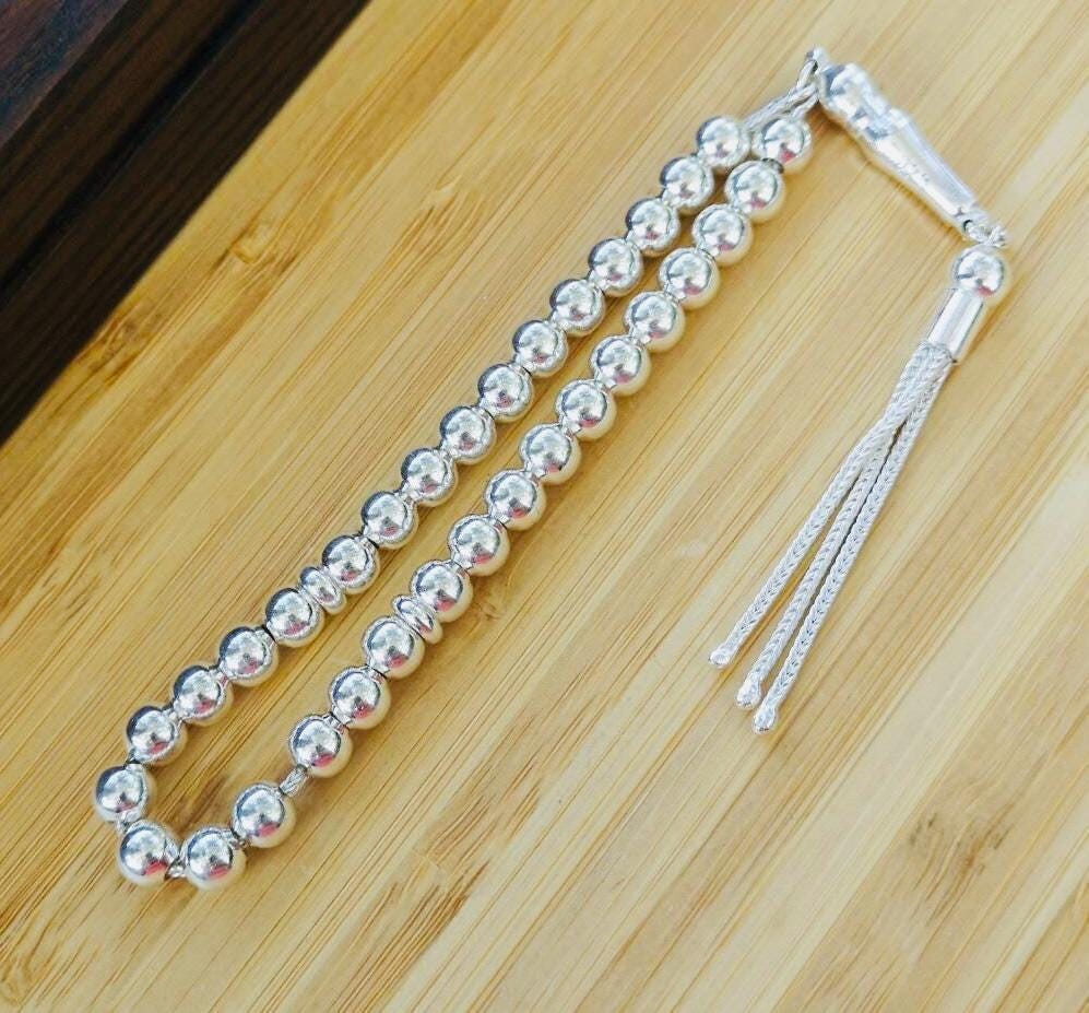 Product Details: • Material: 925 sterling silver • Weight: approx. 16 g • Bead Size: 5x6 mm • Length to Imame: 10 cm • Total Length: 18.5 cm • Comes in a gift box