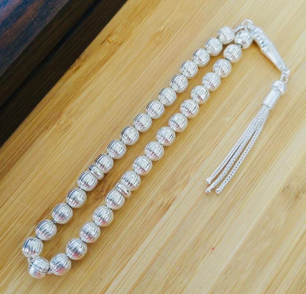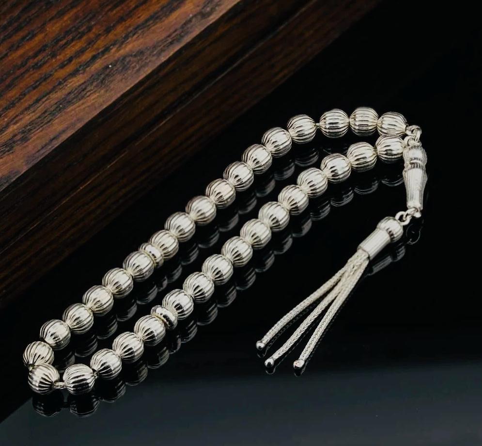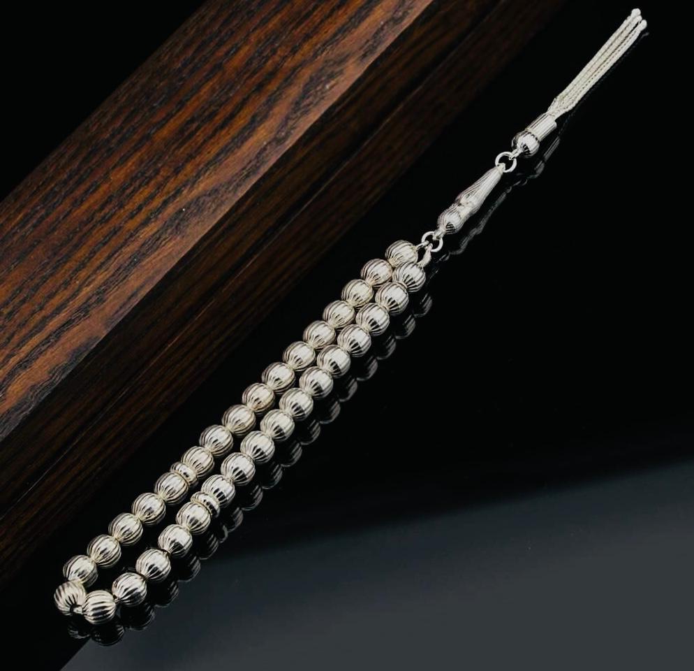 Description: Crafted from 925 sterling silver, this round-cut engraved tasbih combines elegance and spirituality. With its 7 mm bead size, it offers a balanced and refined design, perfect for prayer, meditation, or as part of a collection. Delivered in a stylish gift box, it also makes a thoughtful and meaningful gift.
