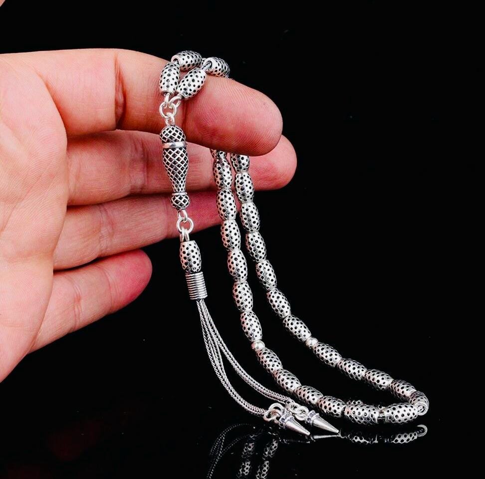 Description: This Barley Cut Fusion Tasbih Model 7 is handcrafted from 925 sterling silver and features 33 beads sized 9 x 6 mm. Weighing 22.3 g, it offers a comfortable feel and elegant appearance. Perfect for daily use, collectors, or as a meaningful Islamic gift. Comes in a stylish gift box.