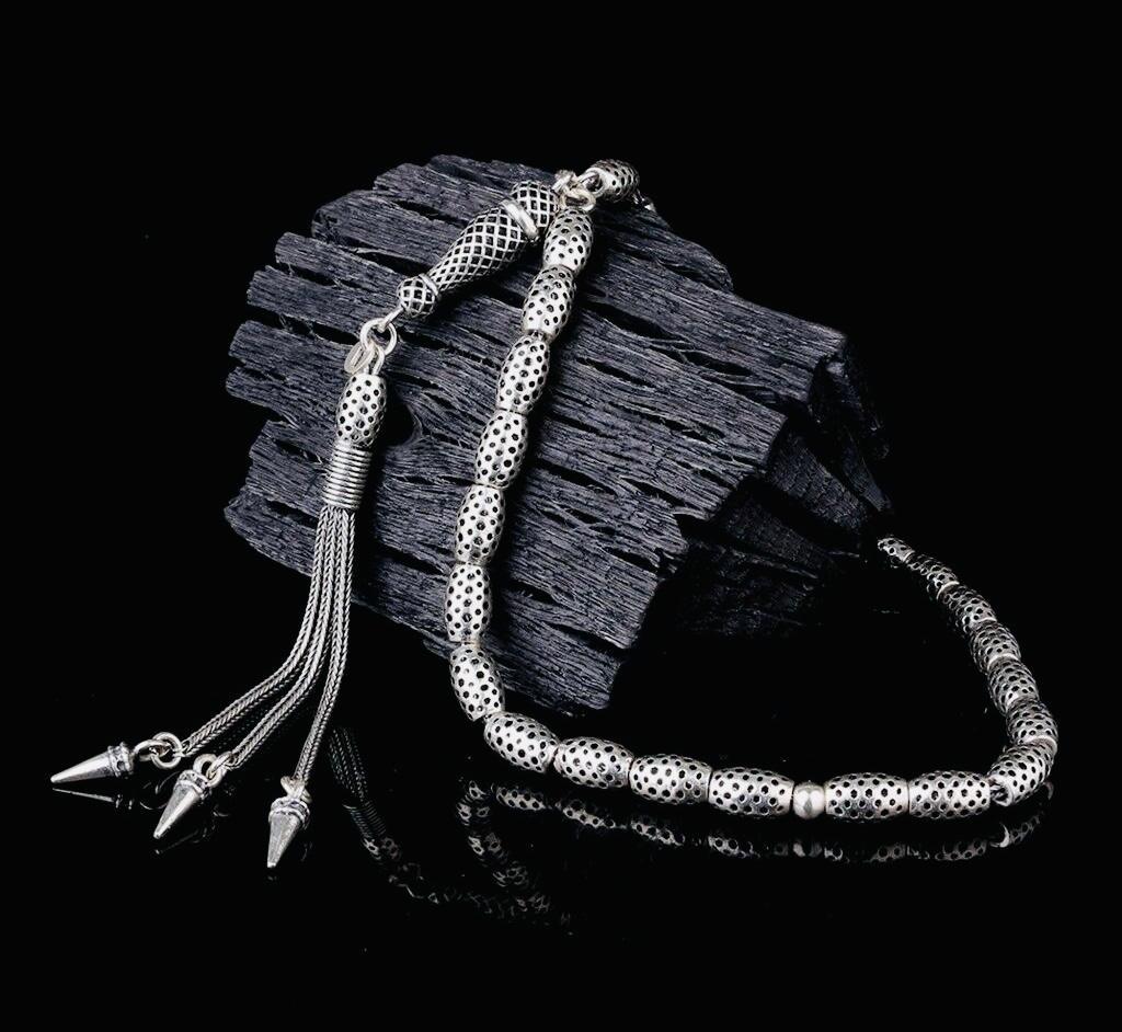 925 Sterling Silver Barley Cut Fusion Tasbih Model 7 – 22.3 g – 33 Beads – 26 cm