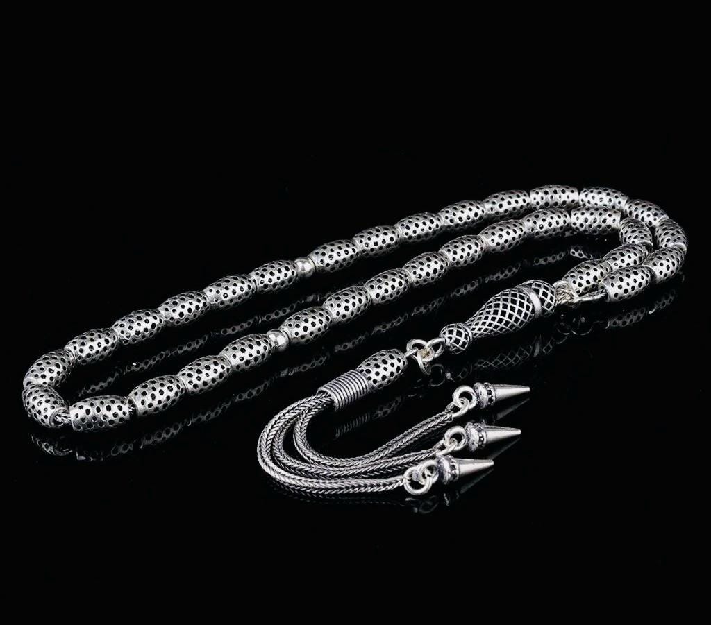 Product Details: • Material: 925 sterling silver • Bead Size & Count: 9 x 6 mm – 33 beads • Weight: 22.3 g • Length to Imame: 16 cm • Total Length: 26 cm • Comes in a gift box
