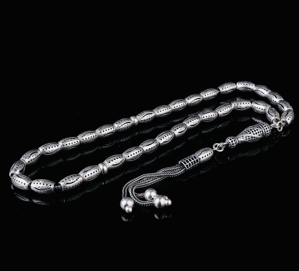 Product Details: • Material: 925 sterling silver • Bead Size & Count: 9 x 6 mm – 33 beads • Length to Imame: 15.5 cm • Total Length: 25.5 cm • Comes in a gift box