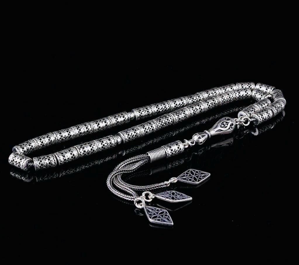 925 Sterling Silver Cylinder Fusion Cut Tasbih Model 2 – 33 Beads – 26 cm