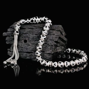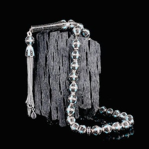 Description: This elegant tasbih is crafted entirely from 925 sterling silver, featuring 8 mm beads that provide a solid and balanced feel in the hand. With a total weight of, it is both functional for prayer and valuable as a collector’s piece. Delivered in a special gift box, it also makes a meaningful present for loved ones.