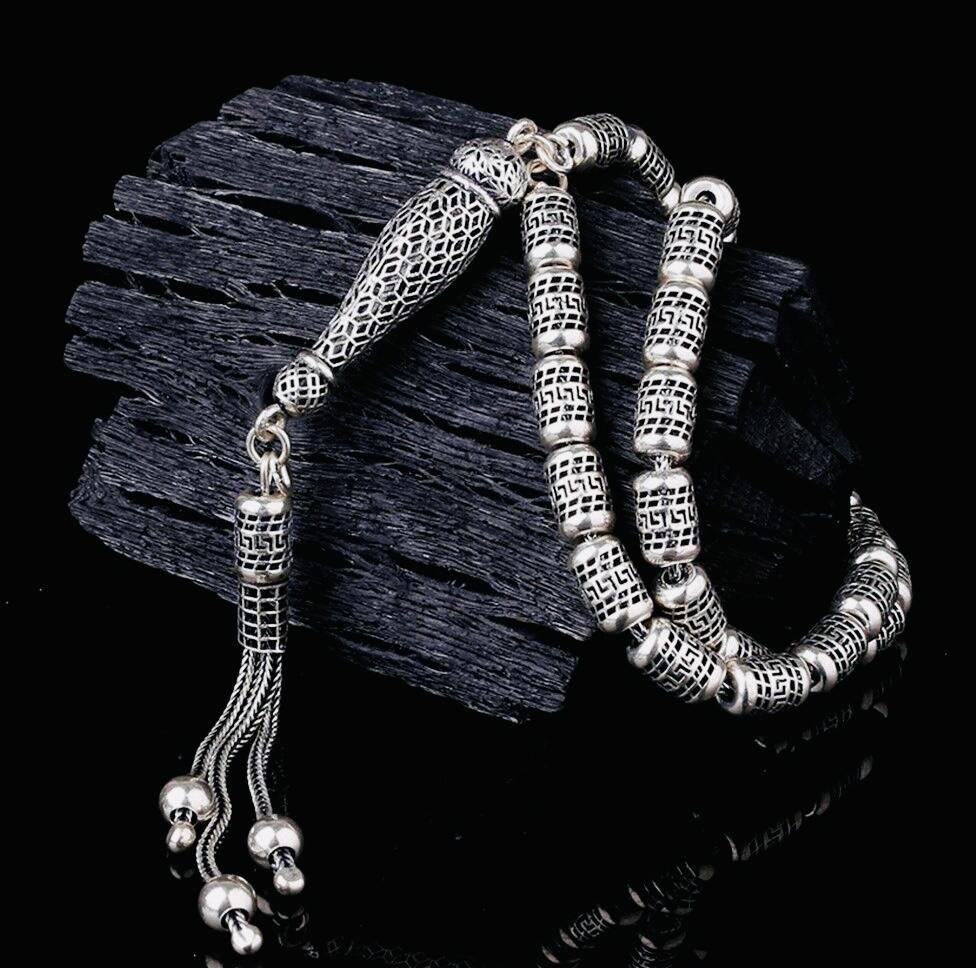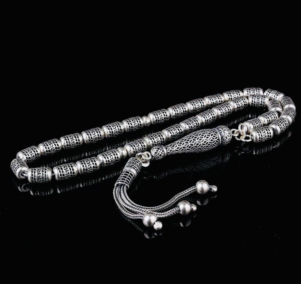 Description: This capsule cut Fizyon misbaha is handcrafted entirely from 925 sterling silver. Featuring 33 smooth beads and elegant craftsmanship, it is perfect for prayer, meditation, or as a collector’s piece. Packaged in a stylish gift box, it also makes a meaningful gift for loved ones.
