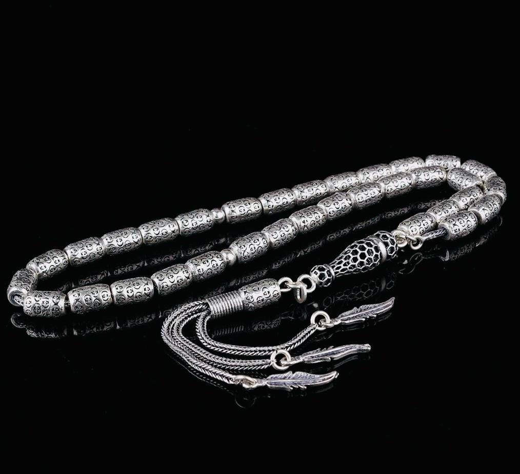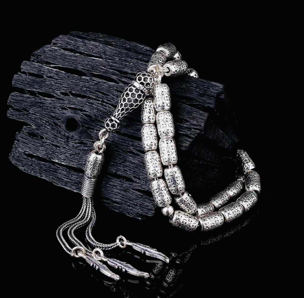 Description: This capsule-cut Fizyon misbaha is handcrafted entirely from 925 sterling silver. With 33 finely shaped silver beads, it is both elegant and durable, making it suitable for everyday use as well as a valuable collectible. Delivered in a stylish gift box, it also makes a meaningful gift for special occasions.