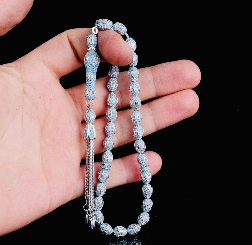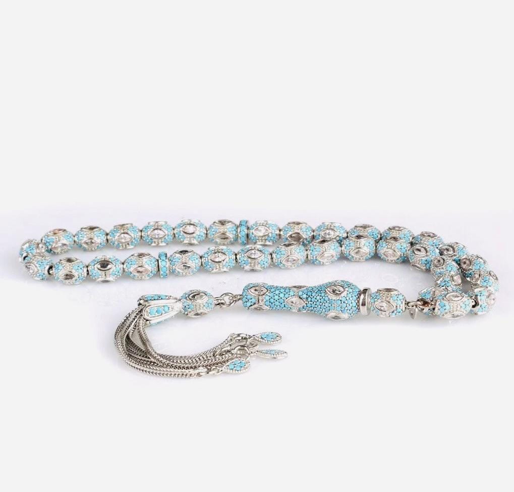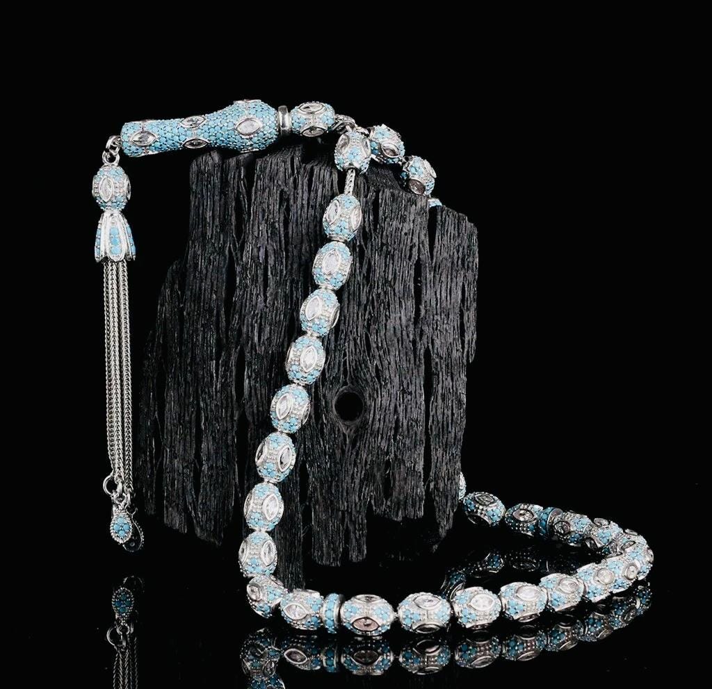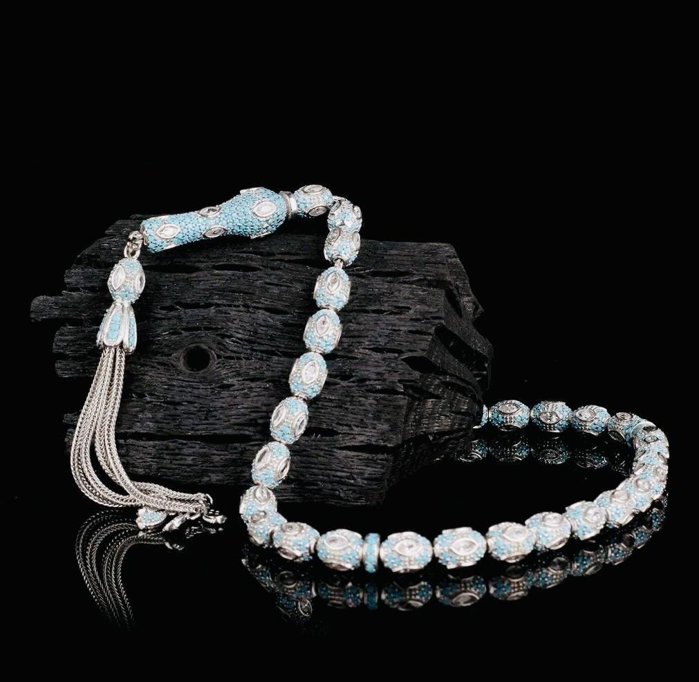 This sterling silver misbaha with turquoise enamel and zircon stone details combines elegance and craftsmanship. Perfect for daily use, prayer, or as a unique spiritual gift.