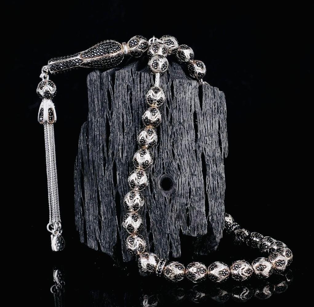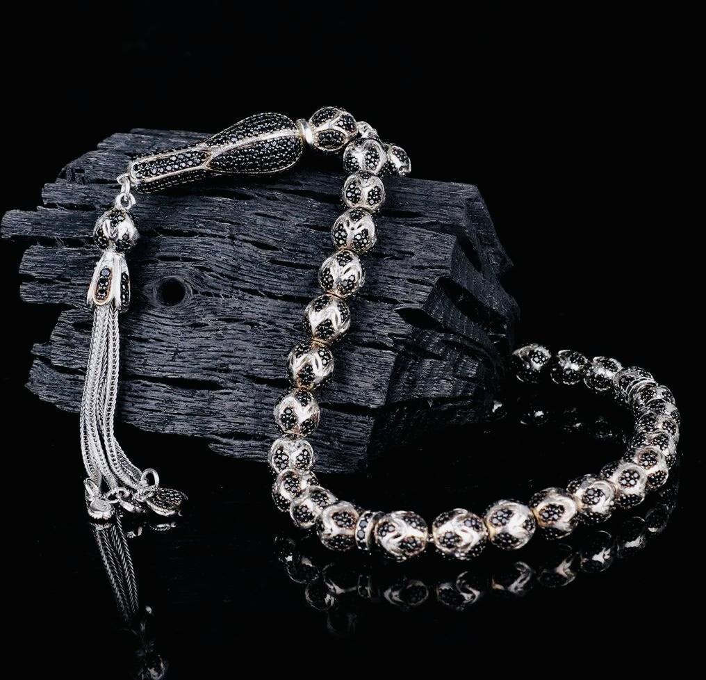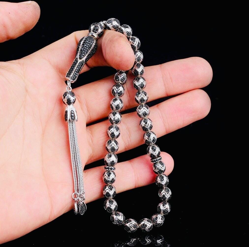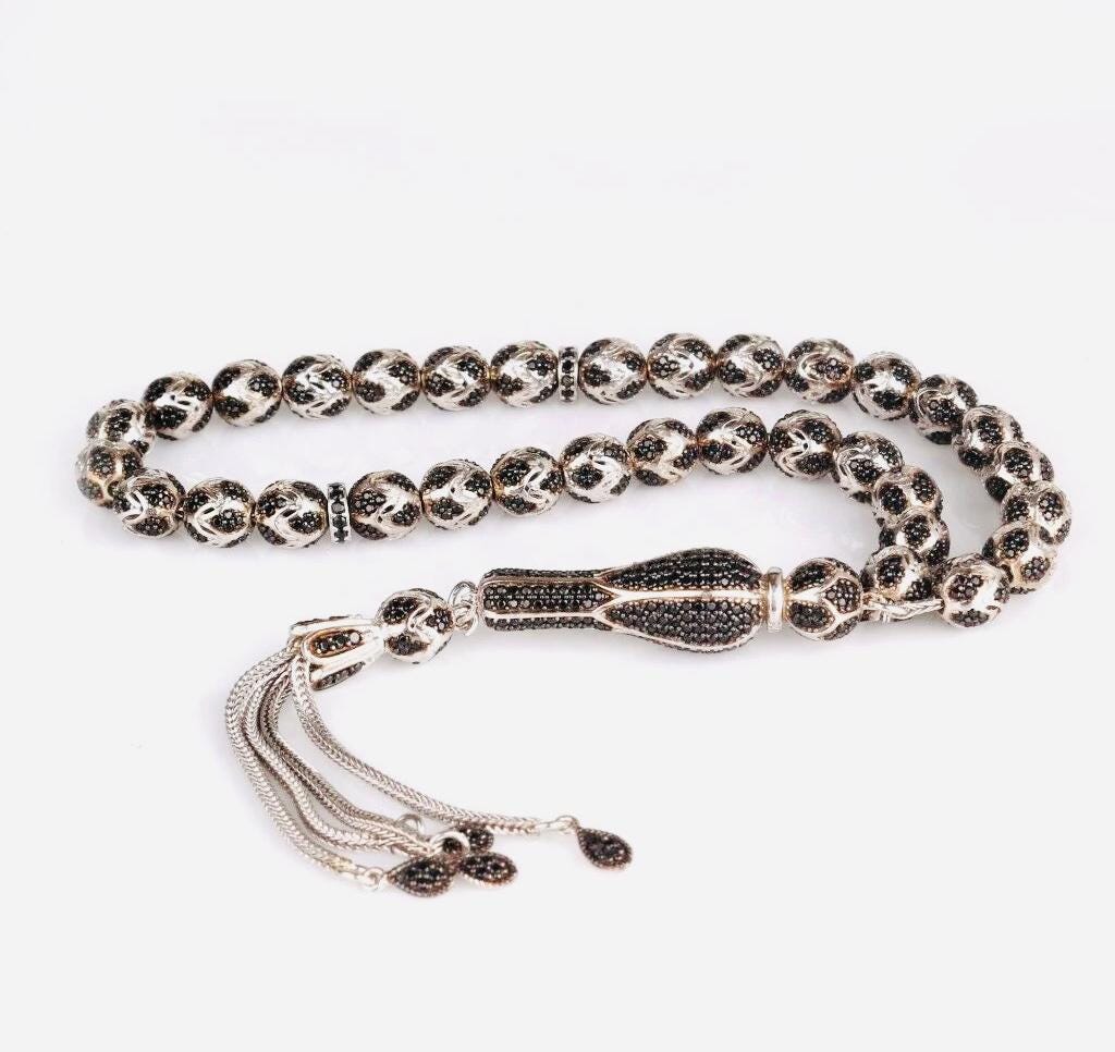 This sterling silver misbaha with zircon inlay offers elegance and durability. Perfect as a spiritual accessory, for prayer, meditation, or as a luxury gift.
